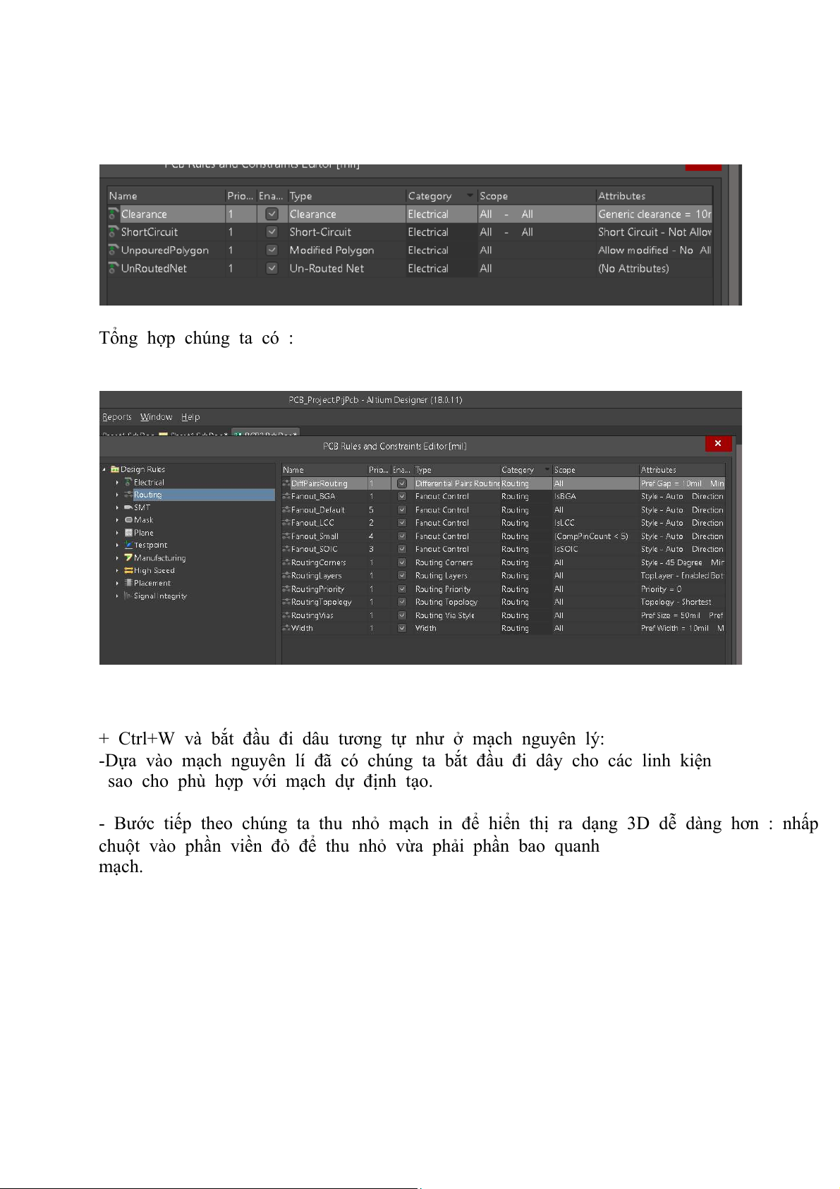 + Trước khi đi dây ta vào phần Design > Rules để chỉnh các