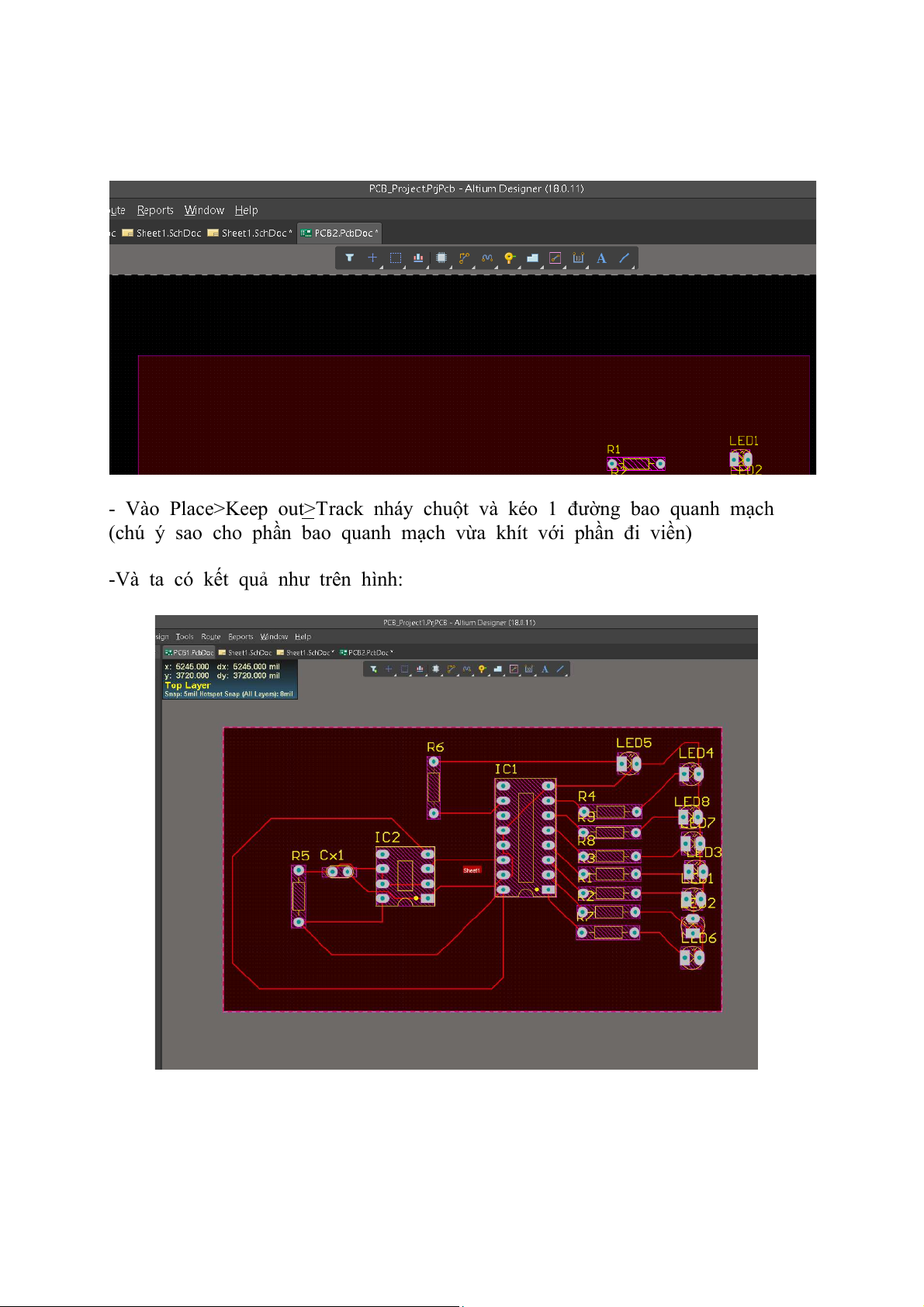 + Ctrl+W và bắt đầu đi dâu tương tự như ở mạch nguyên lý: