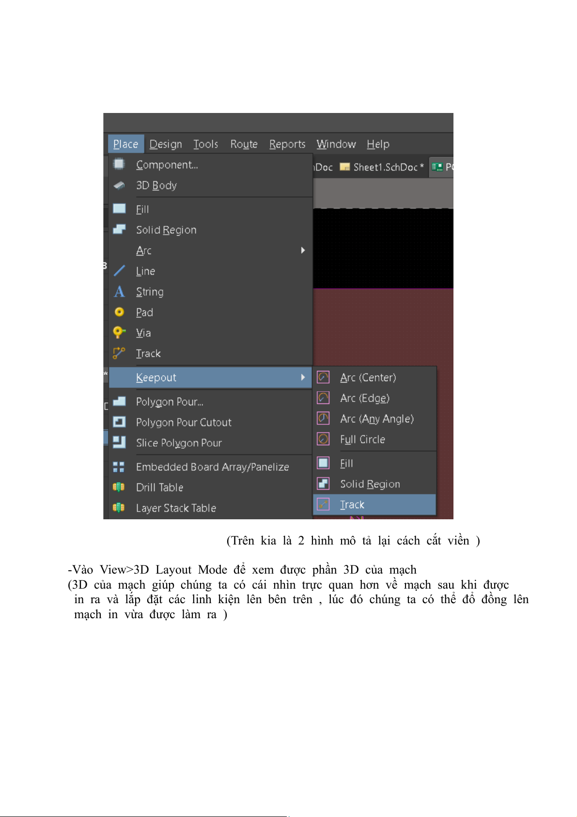 -Vào View>3D Layout Mode để xem được phần 3D của mạch