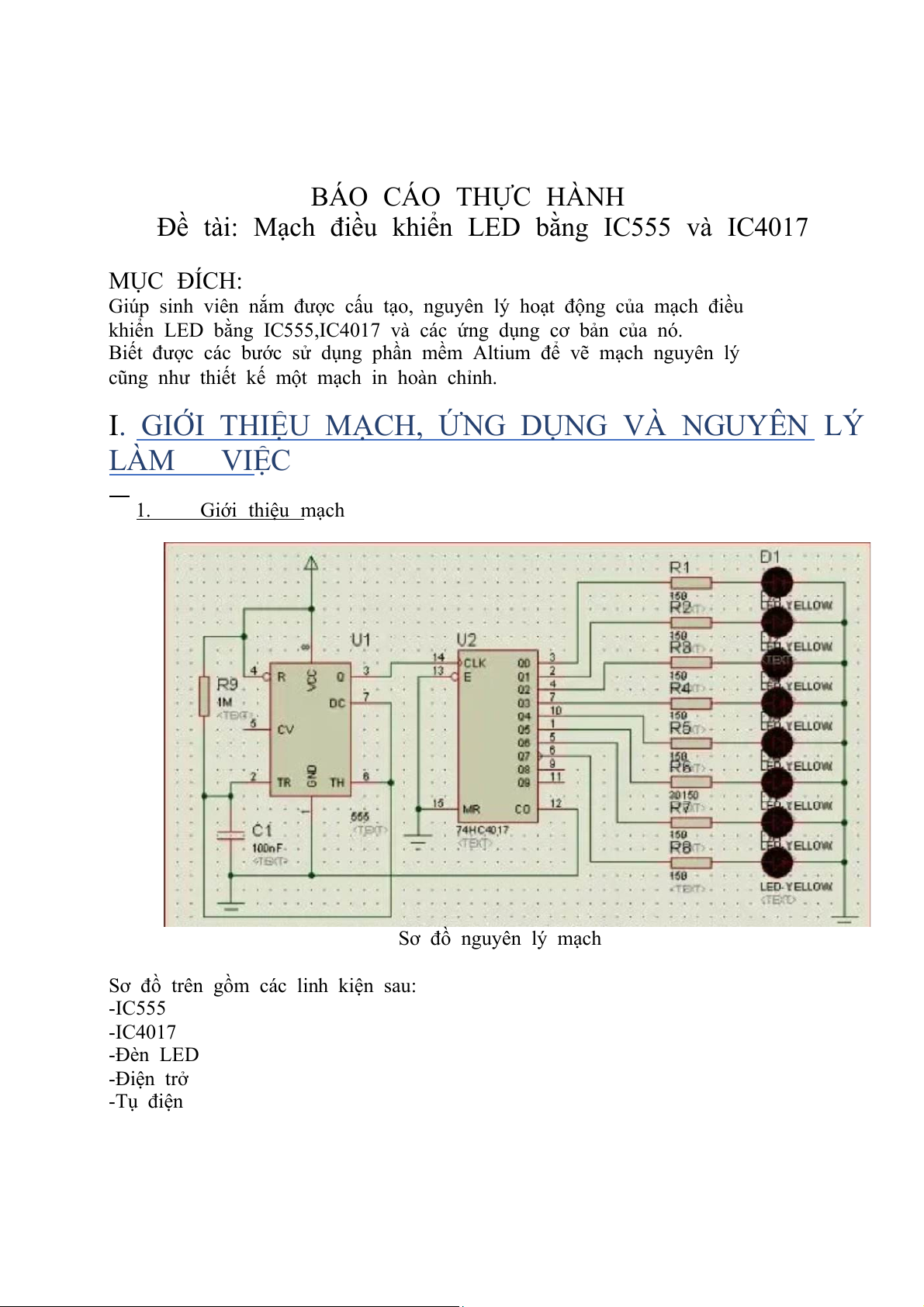 Đề tài: Mạch điều khiển LED bằng IC555 và IC4017 MỤC ĐÍCH:
