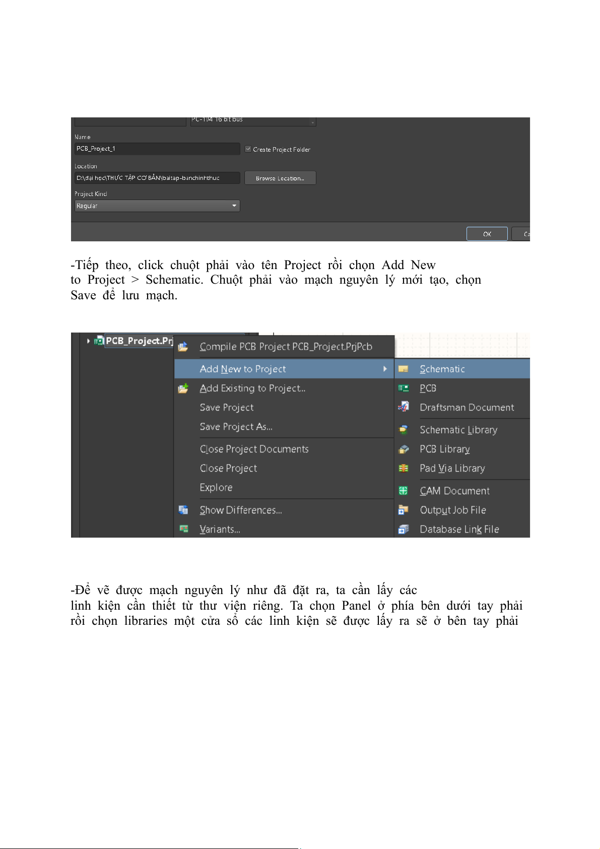 - Để tạo mạch in, ta nhấp chuột phải vào tên Project sau