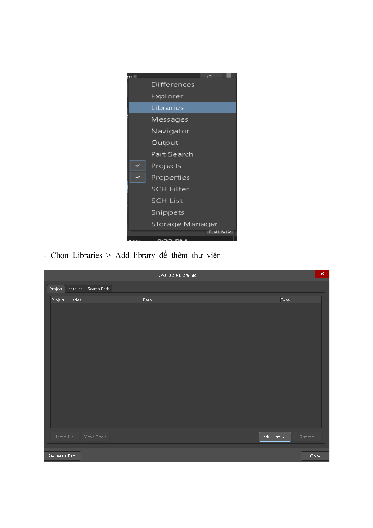 rồi chọn libraries một cửa sổ các linh kiện sẽ được lấy ra sẽ ở bên tay phải