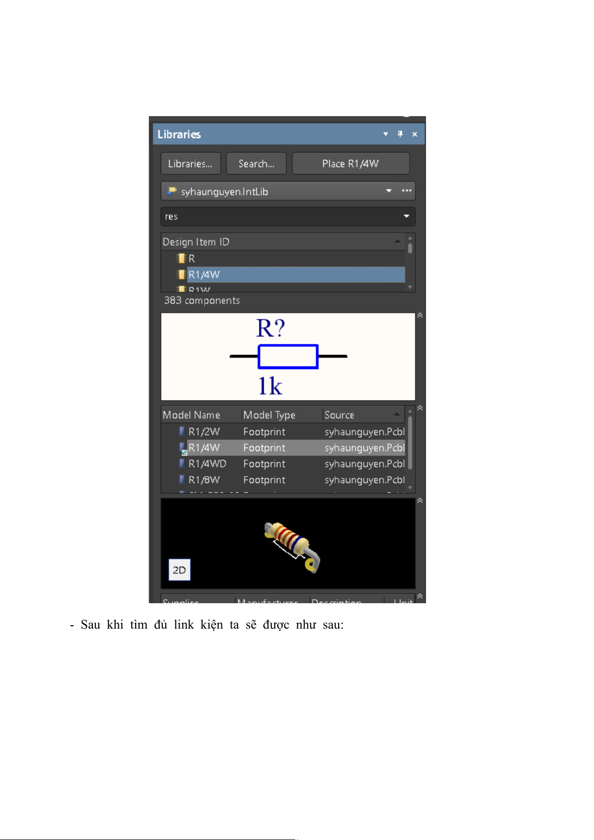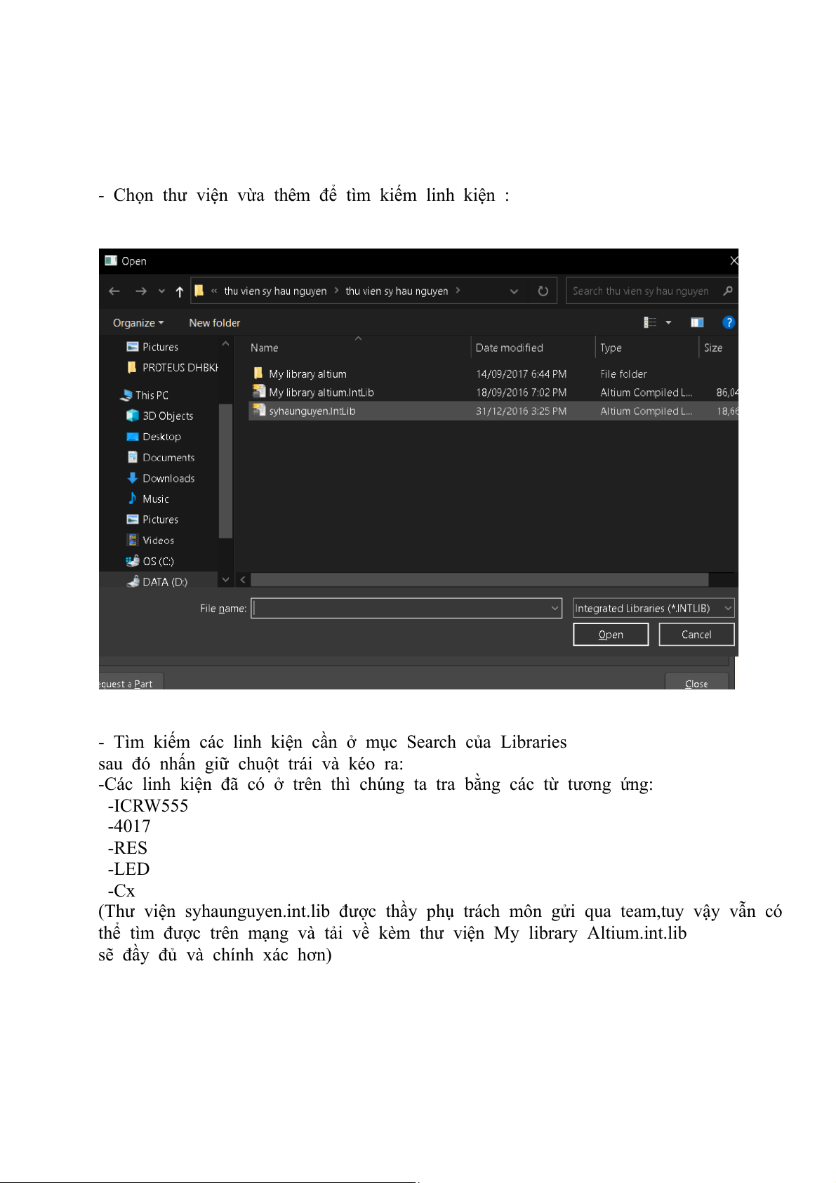 - Chọn thư viện vừa thêm để tìm kiếm linh kiện :