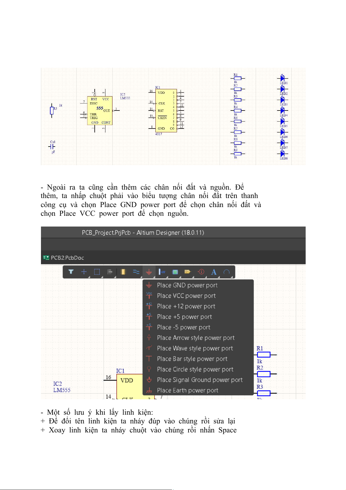 công cụ và chọn Place GND power port để chọn chân nối đất và