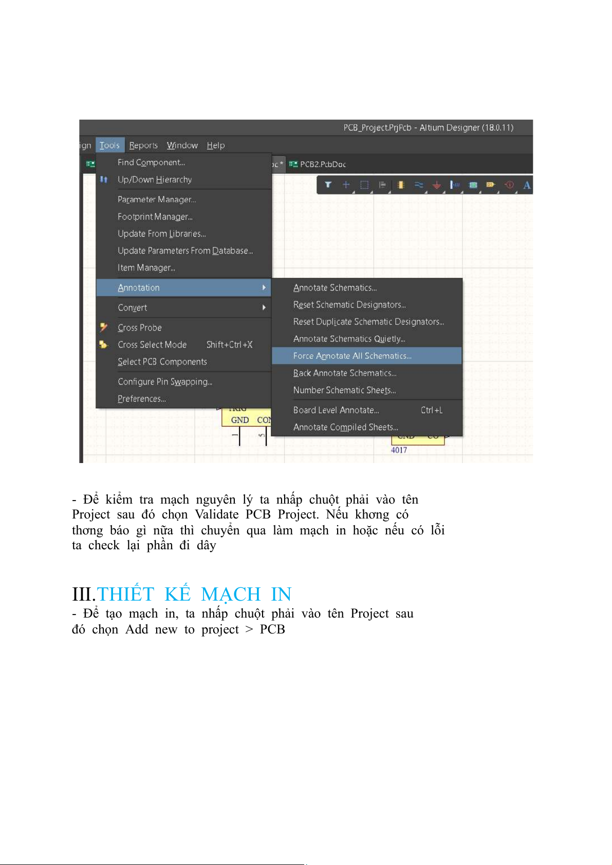Force Annotate All Schmatics thì các linh kiện sẽ tự động được đánh số