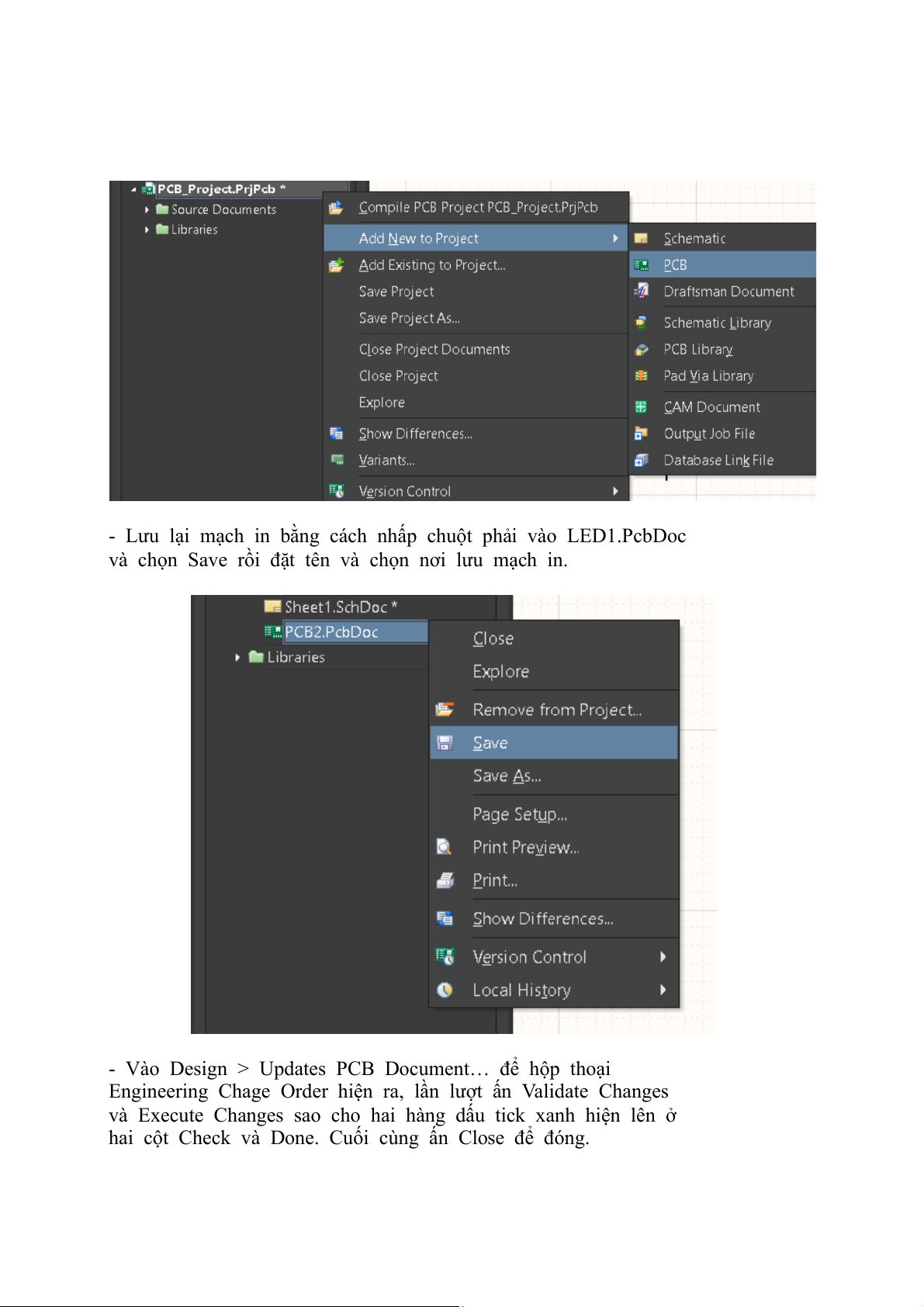 - Lưu lại mạch in bằng cách nhấp chuột phải vào LED1.PcbDoc