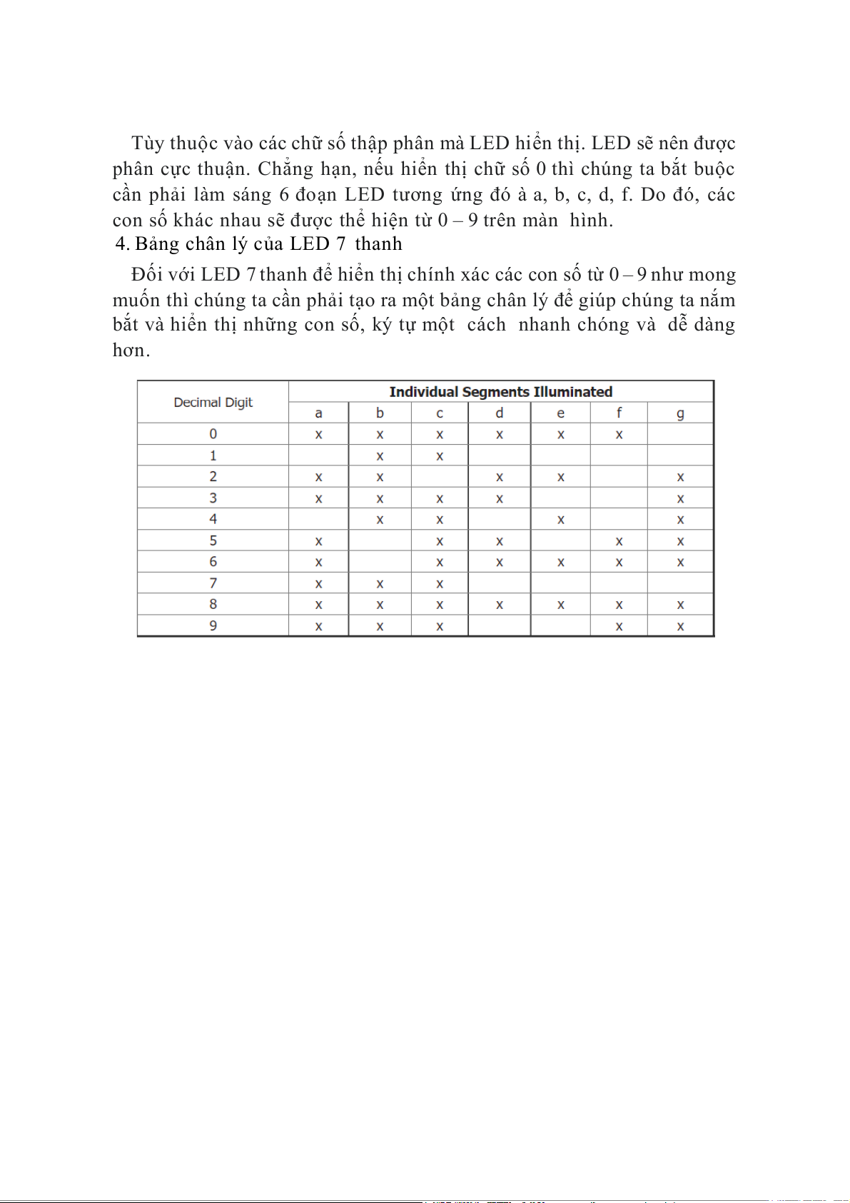 4. Bảng chân lý của LED 7 thanh