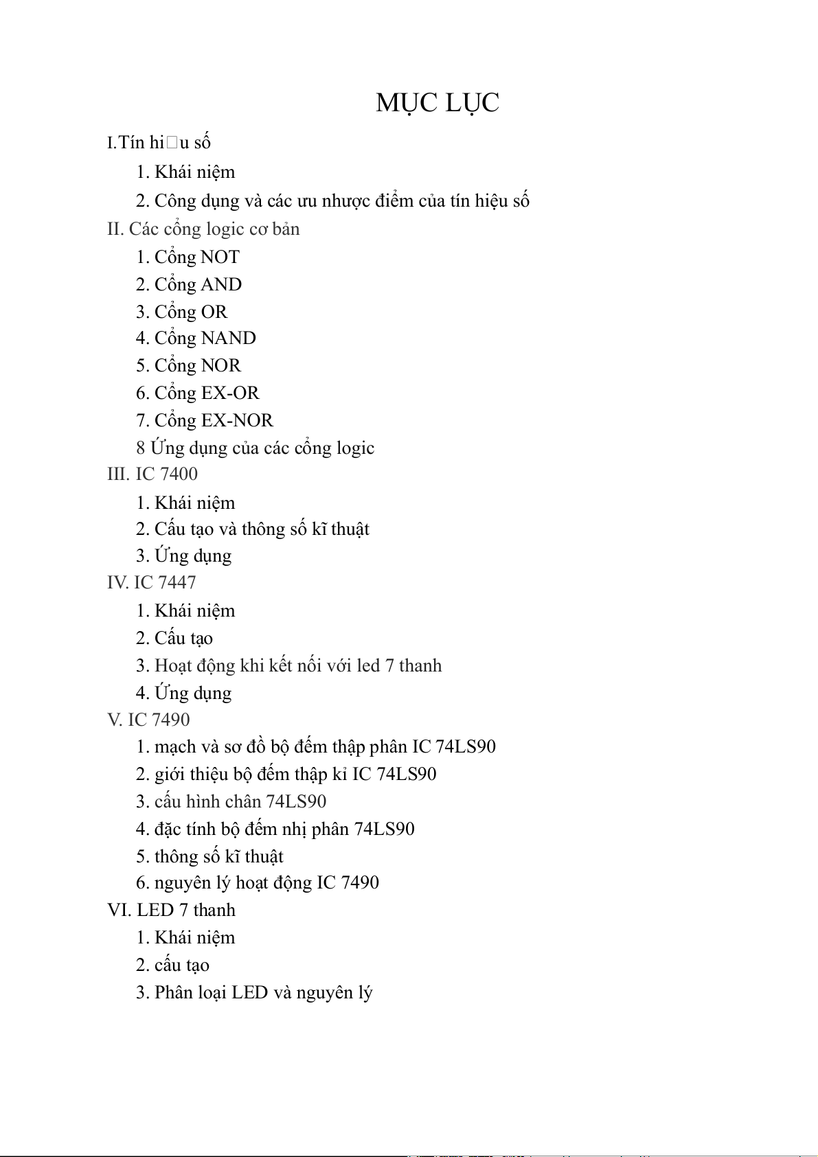 6. nguyên lý hoạt động IC 7490 VI. LED 7 thanh 1. Khái niệm 2. cấu tạo