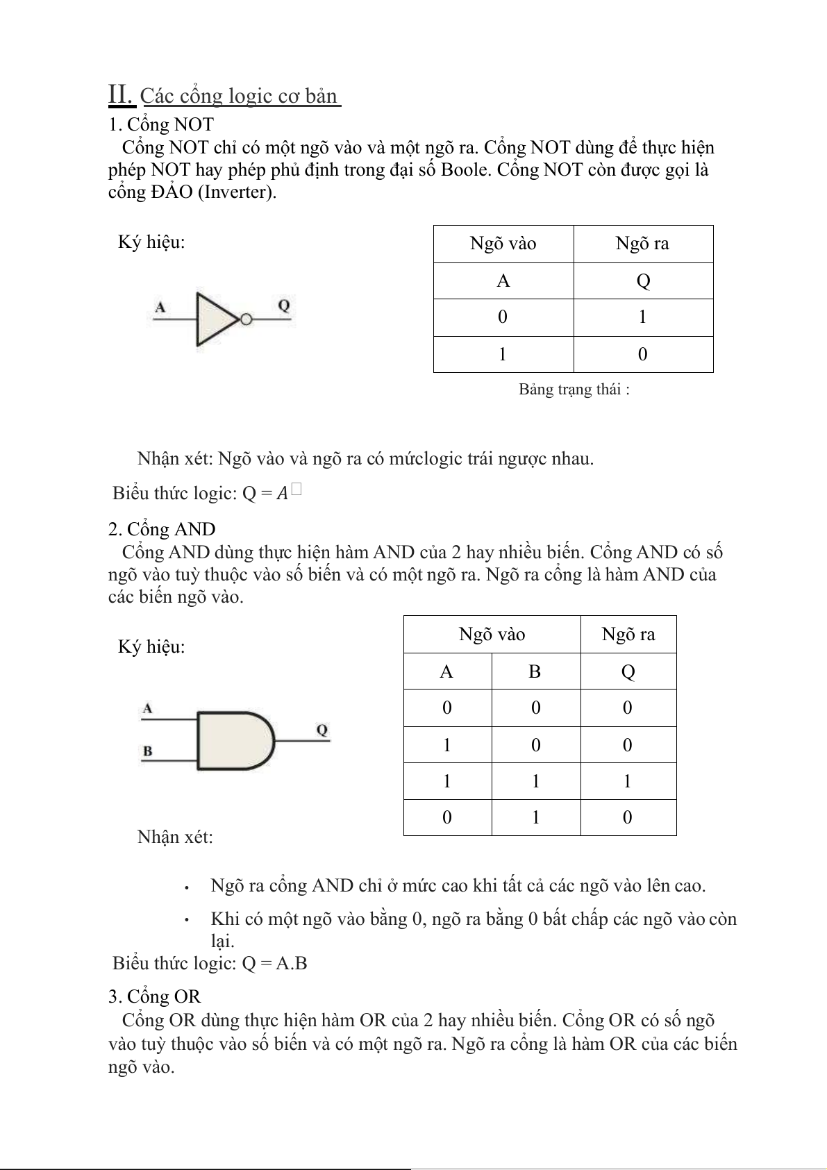 chúng, tức là phương thức hoạt động của chúng. Các cổng logic cơ bản được sử