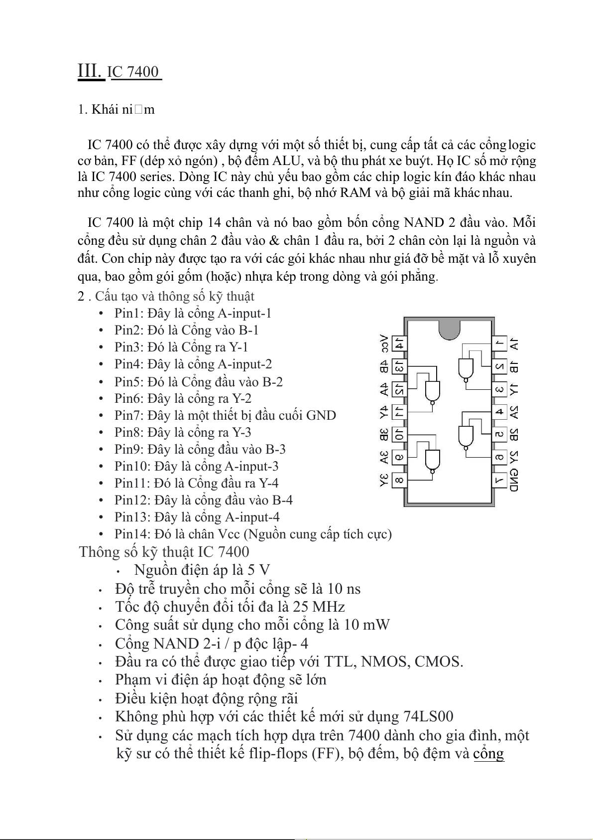 chẳng hạn như mạch giải mã, mạch mã hóa, mạch đa hợp, mạch giải đa hợp,… III. IC 7400 1. Khái ni m