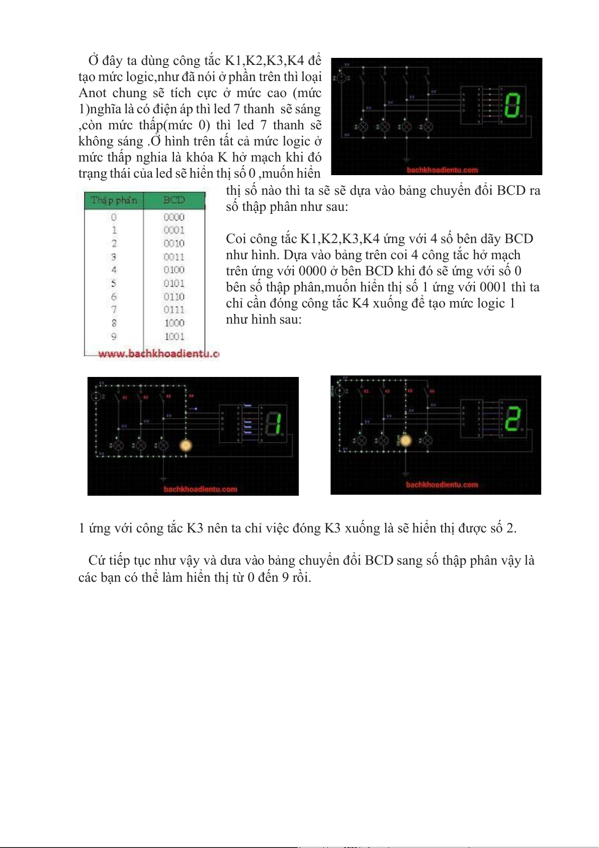 Anode của LED 7 thanh sẽ được nối với nhau ở mức logic “1”, các phân đoạn LED
