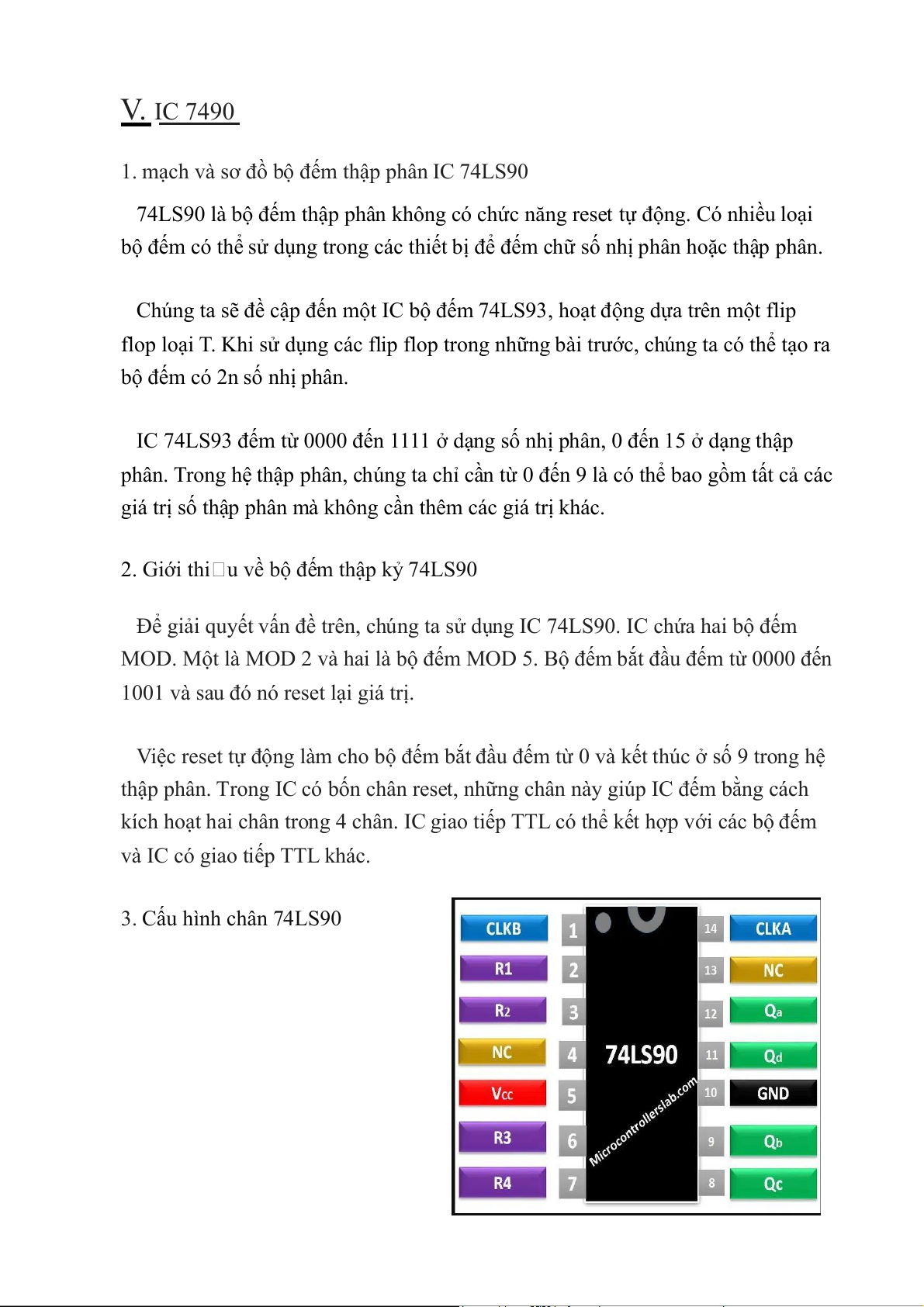 2. giới thiệu bộ đếm thập kỉ IC 74LS90 3. cấu hình chân 74LS90