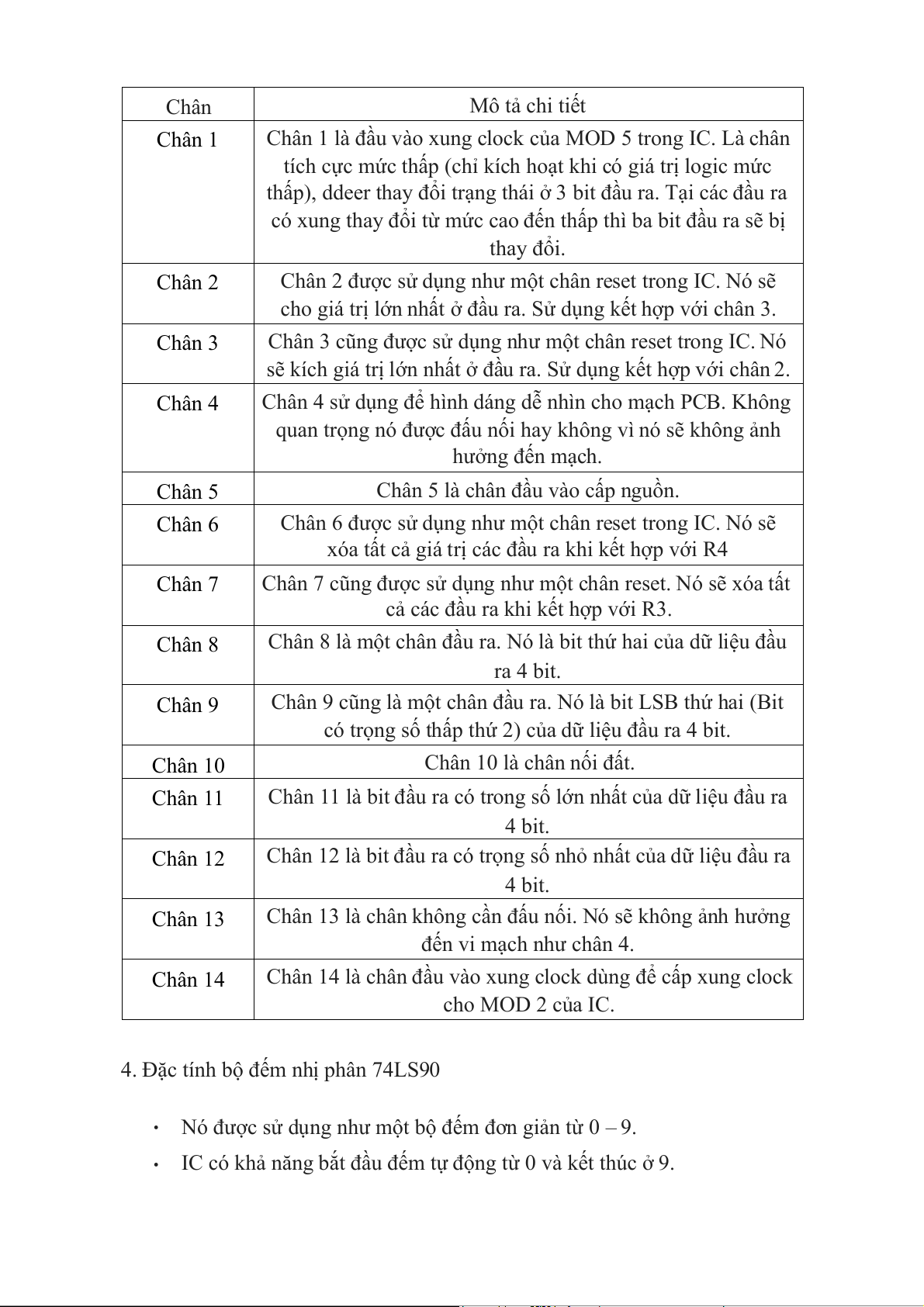 4. đặc tính bộ đếm nhị phân 74LS90 5. thông số kĩ thuật