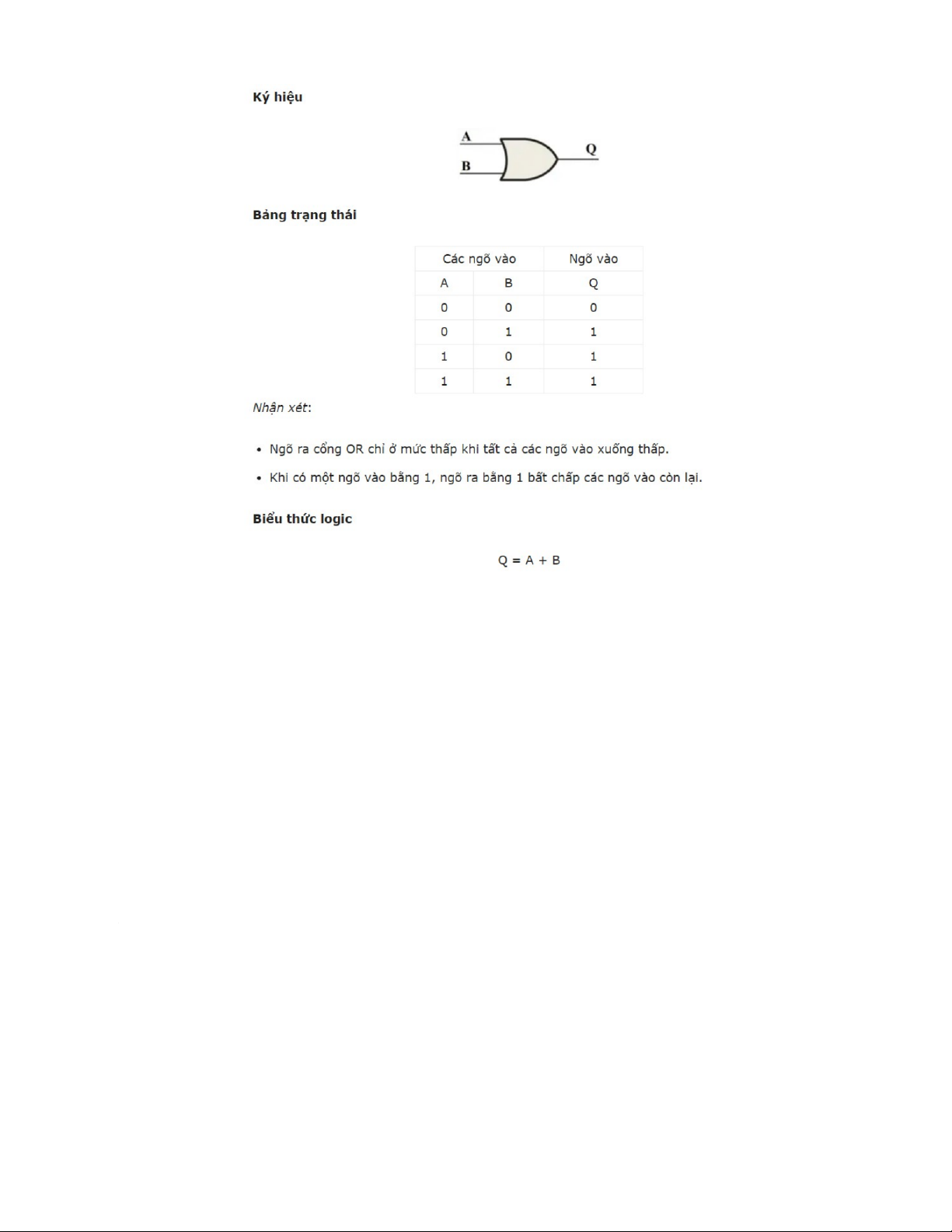 thuộc vào số biến và có một ngõ ra. Ngõ ra cổng là hàm AND của các biến ngõ vào. c. Cổng OR