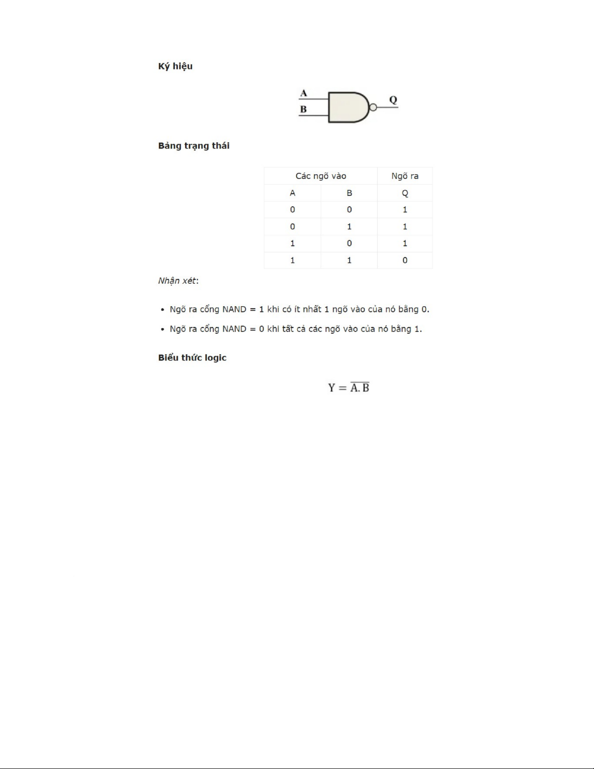 thuộc vào số biến và có một ngõ ra. Ngõ ra cổng là hàm OR của các biến ngõ vào. d. Cổng NAND