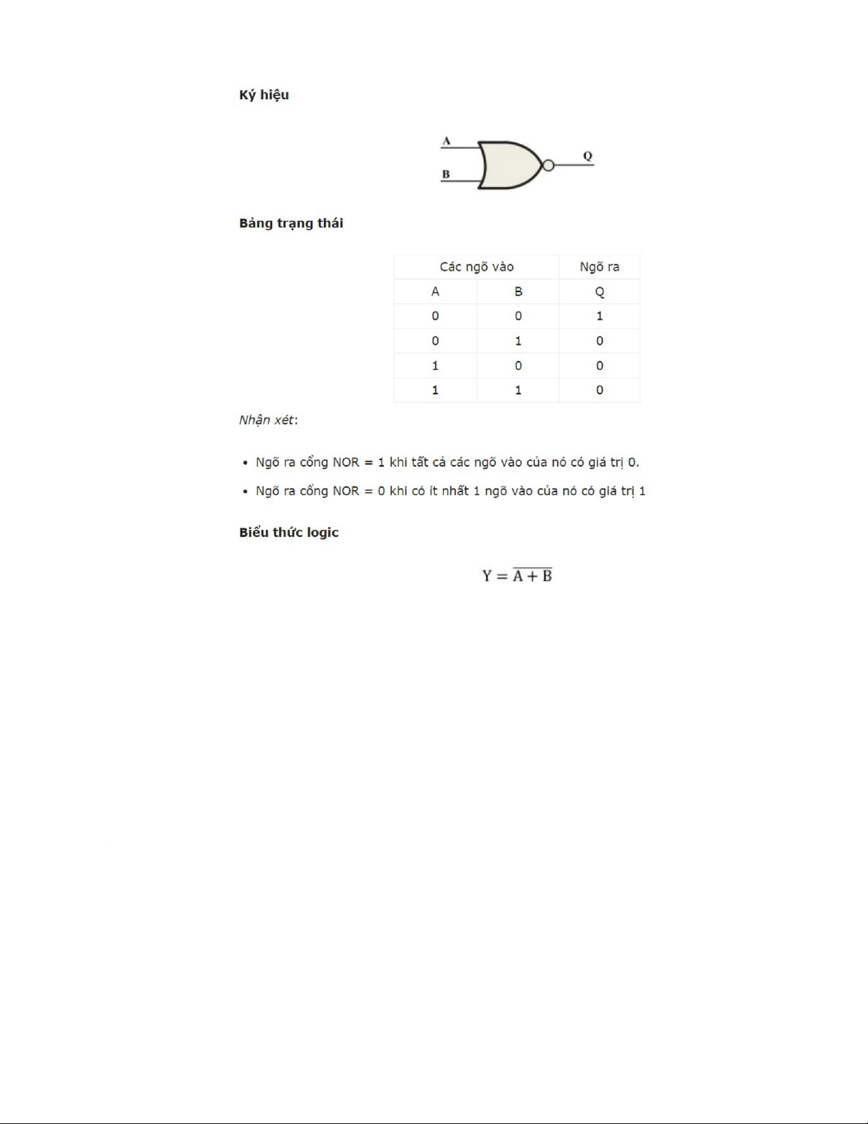 Cổng NAND là kết hợp của cổng AND và cổng NOT. Ngõ ra của cổng NAND là đảo với ngõ ra cổng AND. e. Cổng NOR