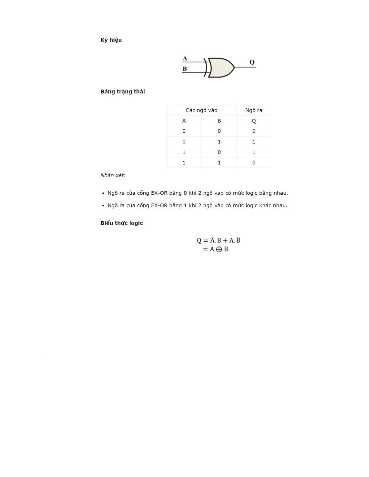 Cổng EX-OR dùng để thực hiện hàm EX-OR. Cổng EX-OR chỉ có 2 ngõ vào và 1 ngõ ra. g. Cổng EX-NOR