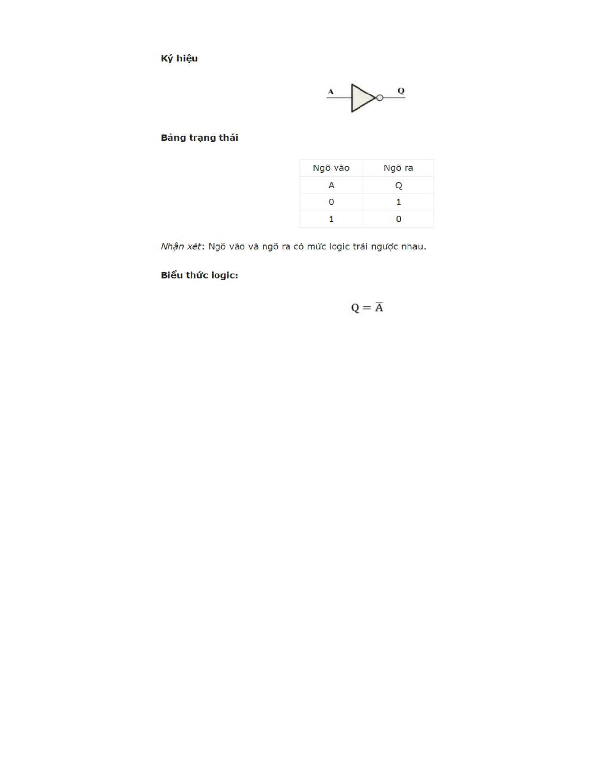 Cổng NOT chỉ có một ngõ vào và một ngõ ra. Cổng NOT dùng để thực hiện phép NOT