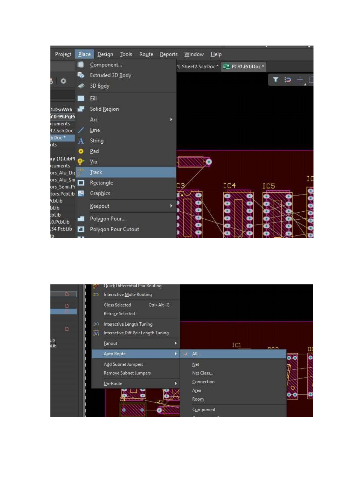 chọn Route -> Auto route -> All