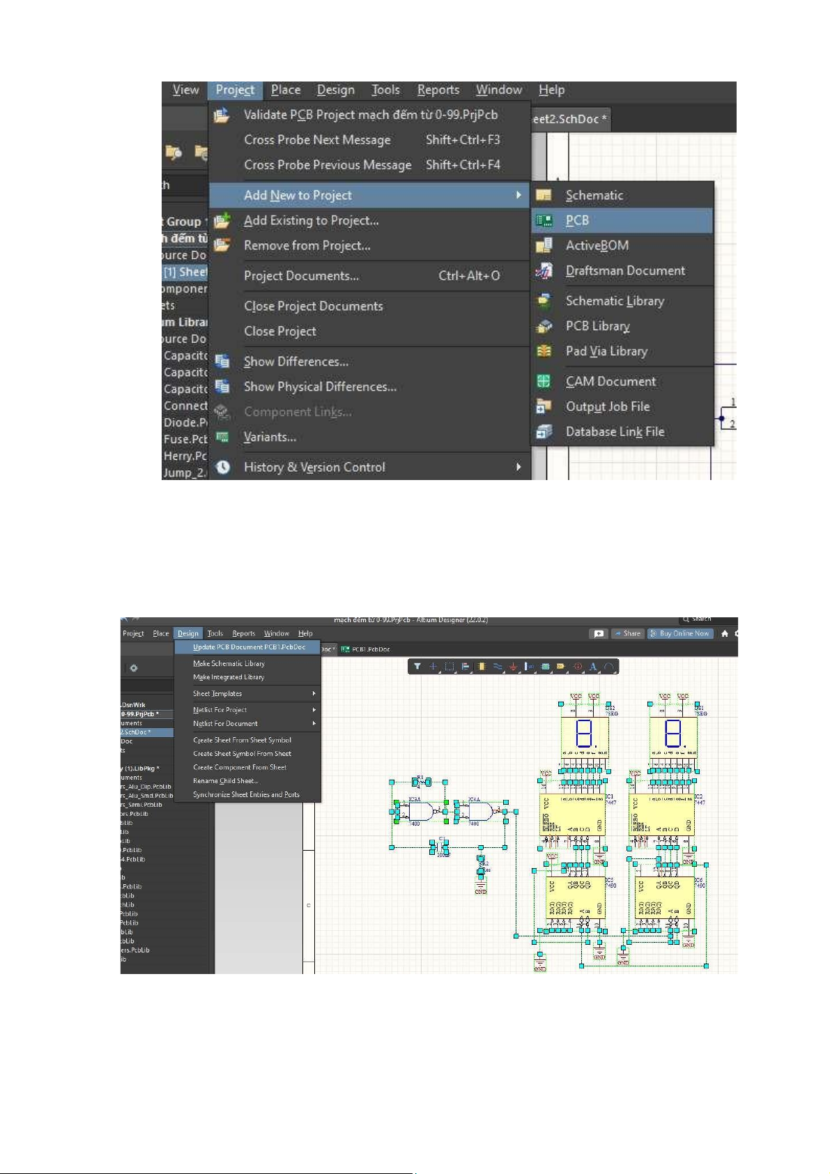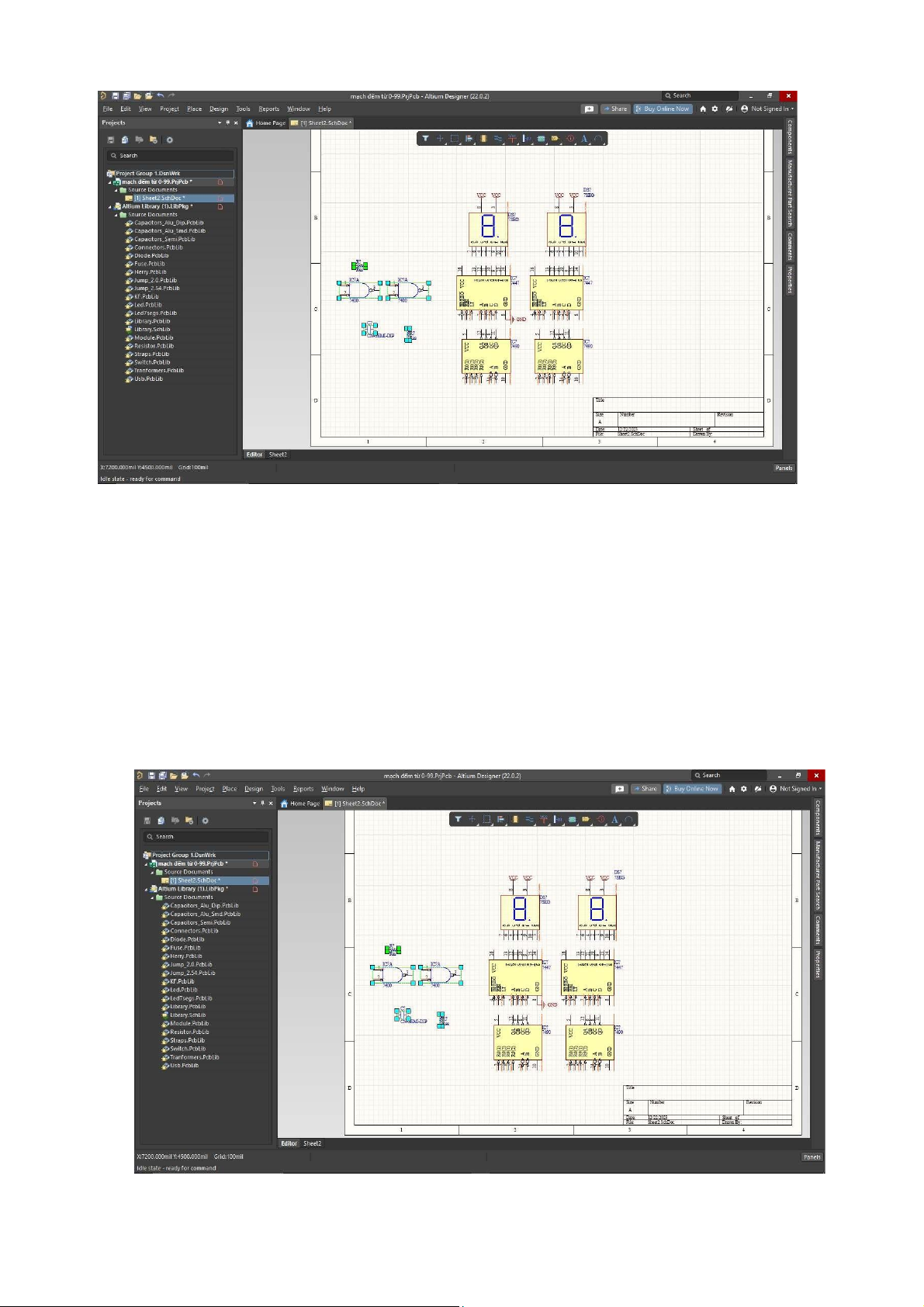 phần mềm Altium Designer, cụ thể là mạch ếm từ 0 – 99 và từ sơ