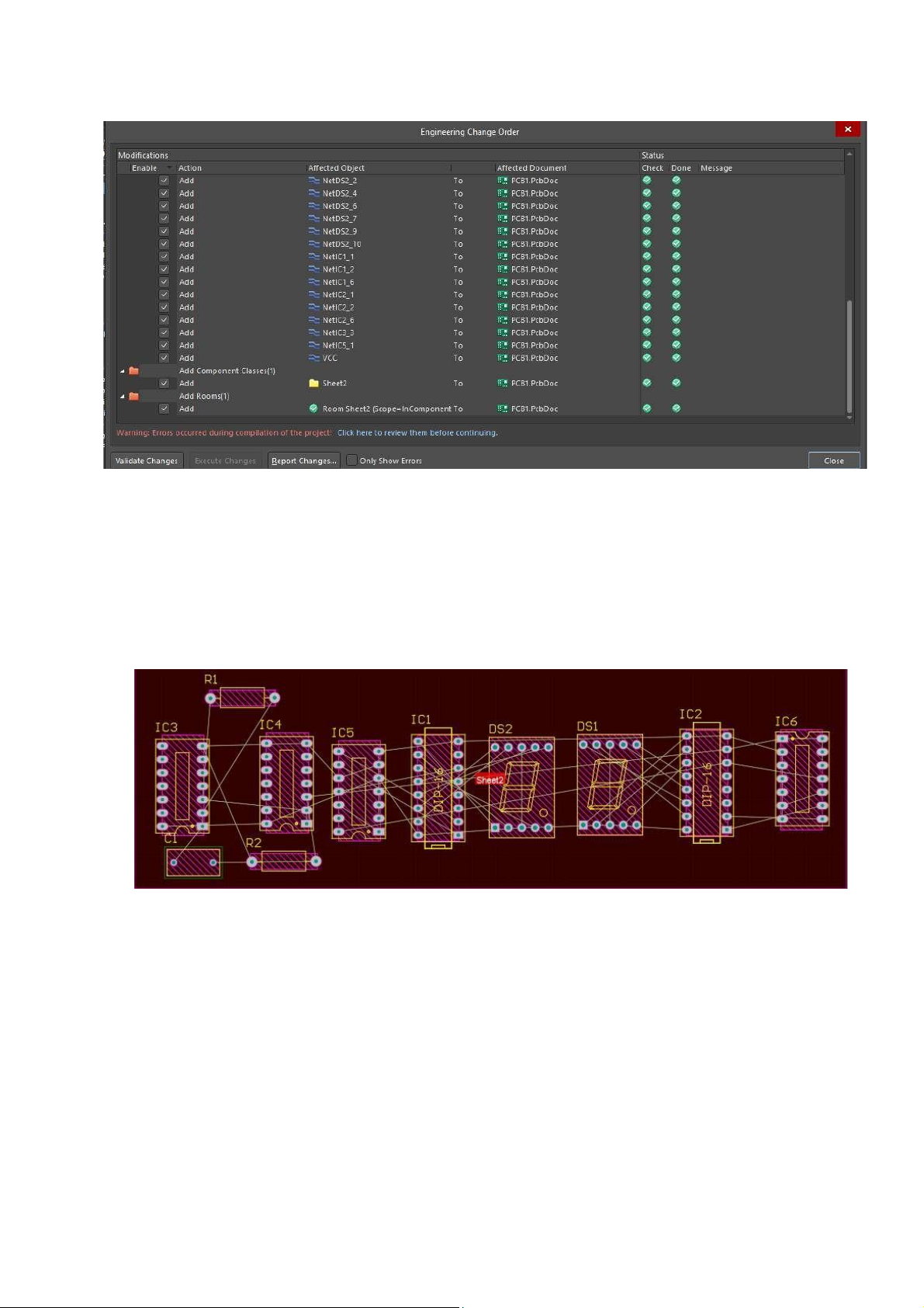 Sau khi chọn Update PCB, sẽ có một cửa sổ hội thoại hiện lên: