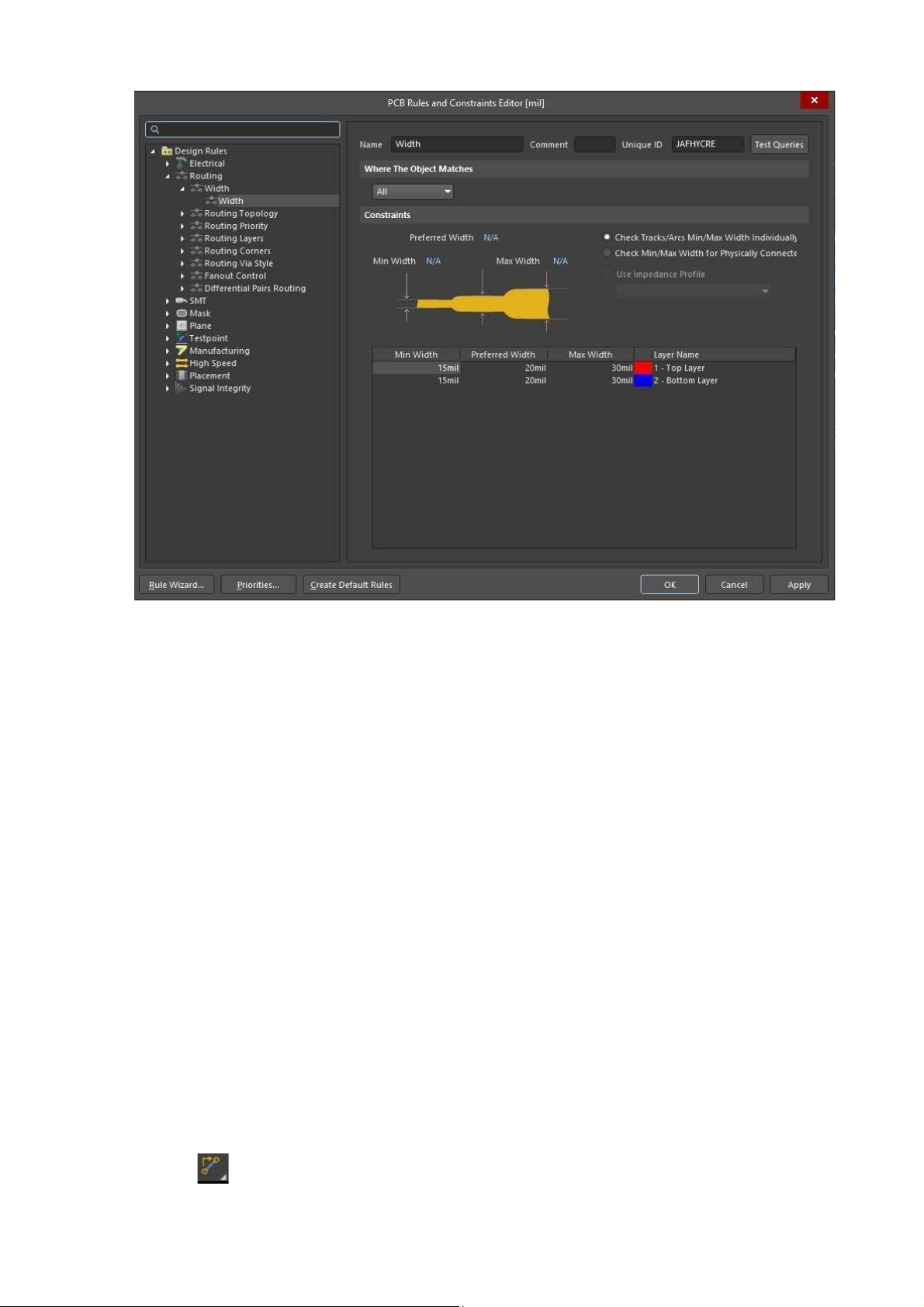 Clearance : Thiết lập khoảng cách giữa các ường dây trong mạch in •