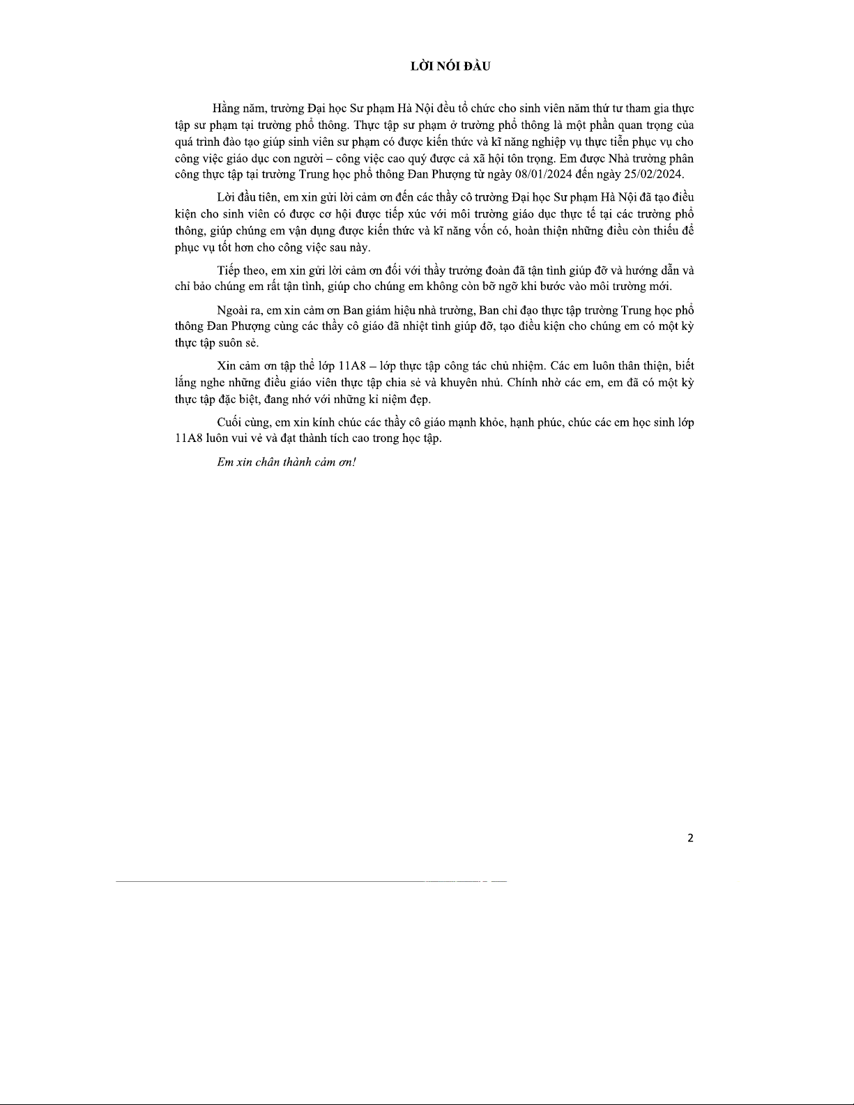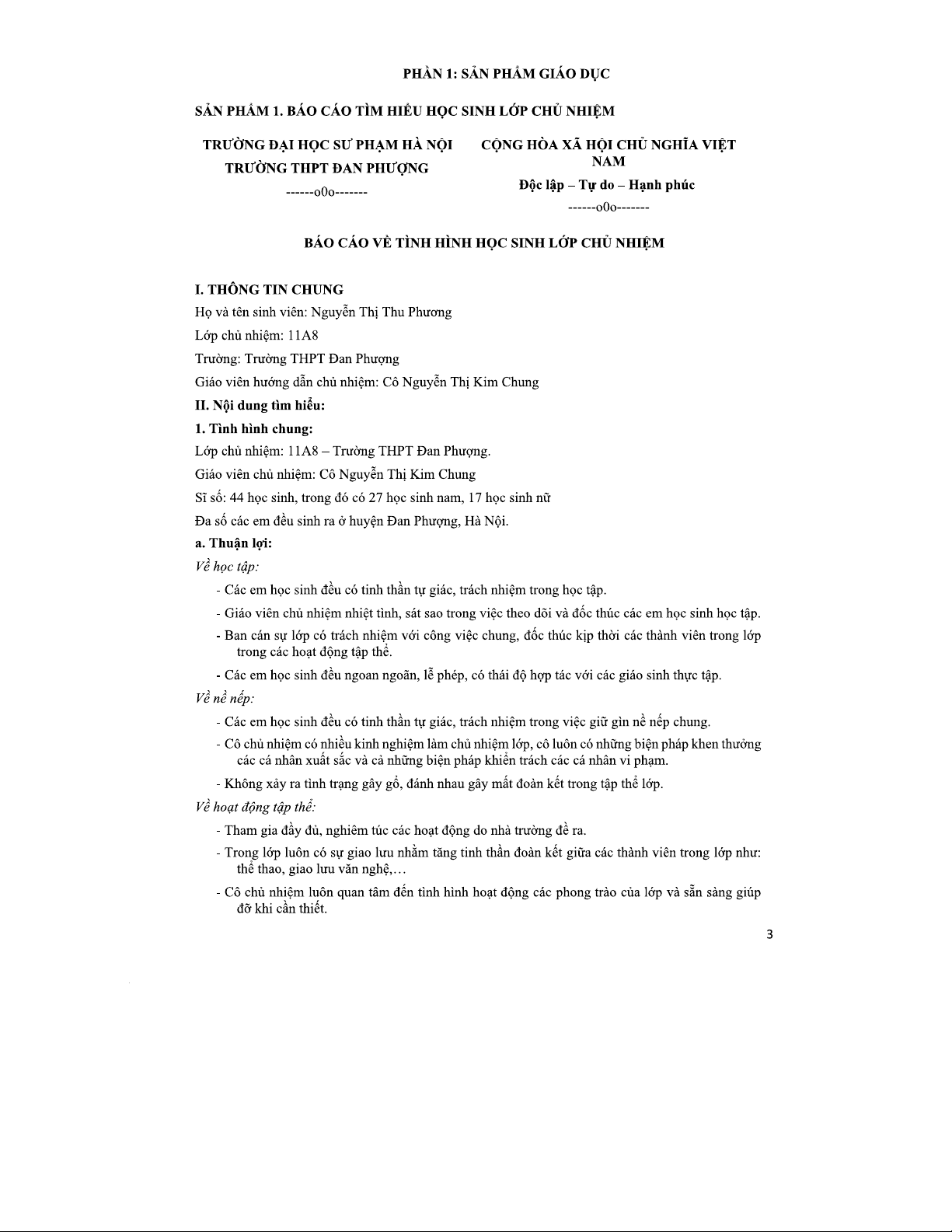 Báo cáo Thực Tập Cuối Kỳ Môn GDTC - Lớp 11A Trường THPT Đan Phượng