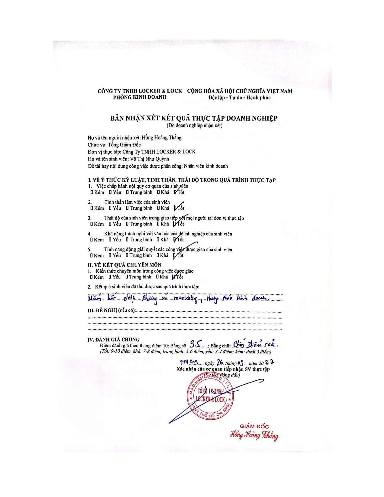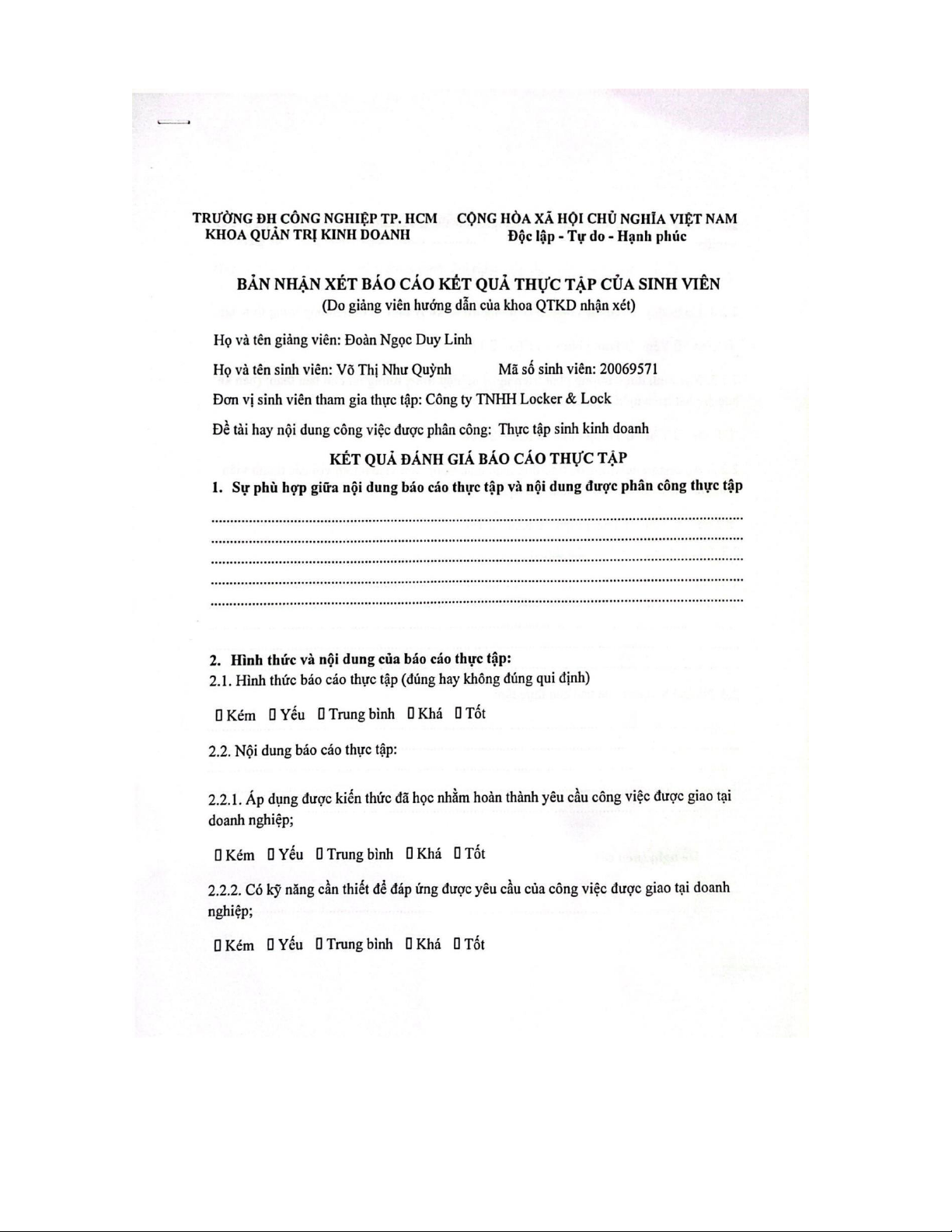 : CÔNG TY TNHH LOCKER & LOCK Thời gian thực tập