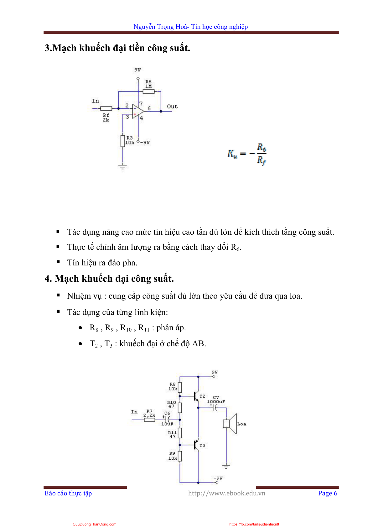 • T2 , T3 : khuếch đại ở chế độ AB. Báo cáo thực tập http://www.ebook.edu.vn Page 6 CuuDuongThanCong.com