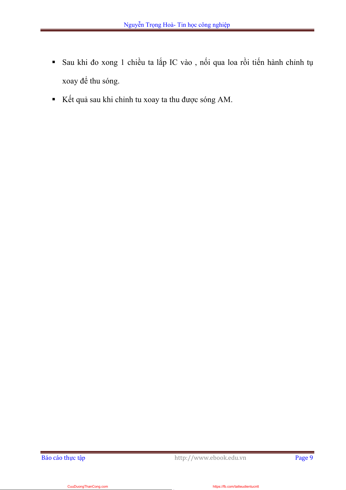 Kết quả sau khi chỉnh tu xoay ta thu được sóng AM. Báo cáo thực tập http://www.ebook.edu.vn Page 9 CuuDuongThanCong.com