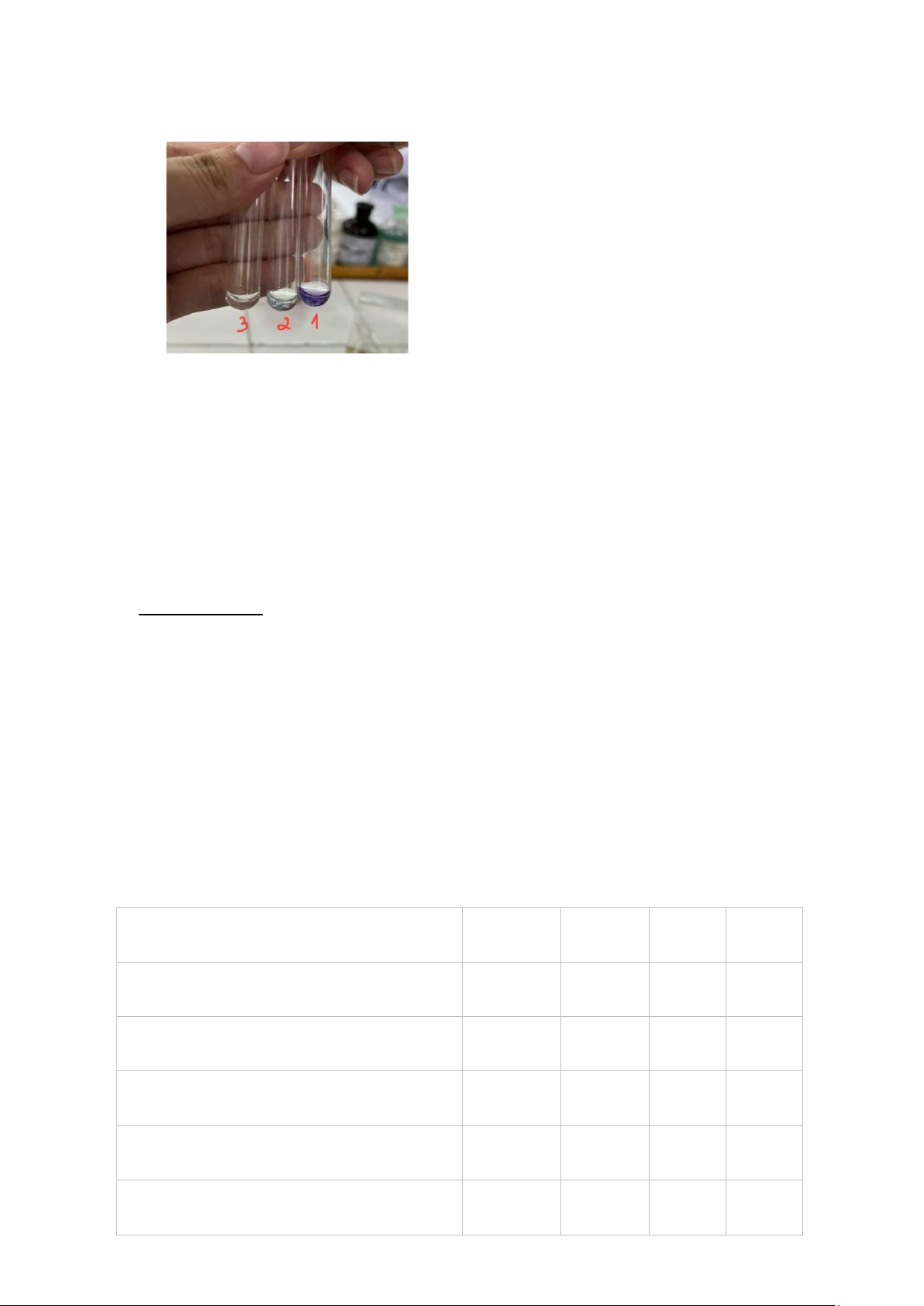 Lắc đều, quan sát phản ứng lOMoAR cPSD| 47205411 c) Kết quả - ON1: dd màu tím đậm - ON2: dd có màu tím nhạt -