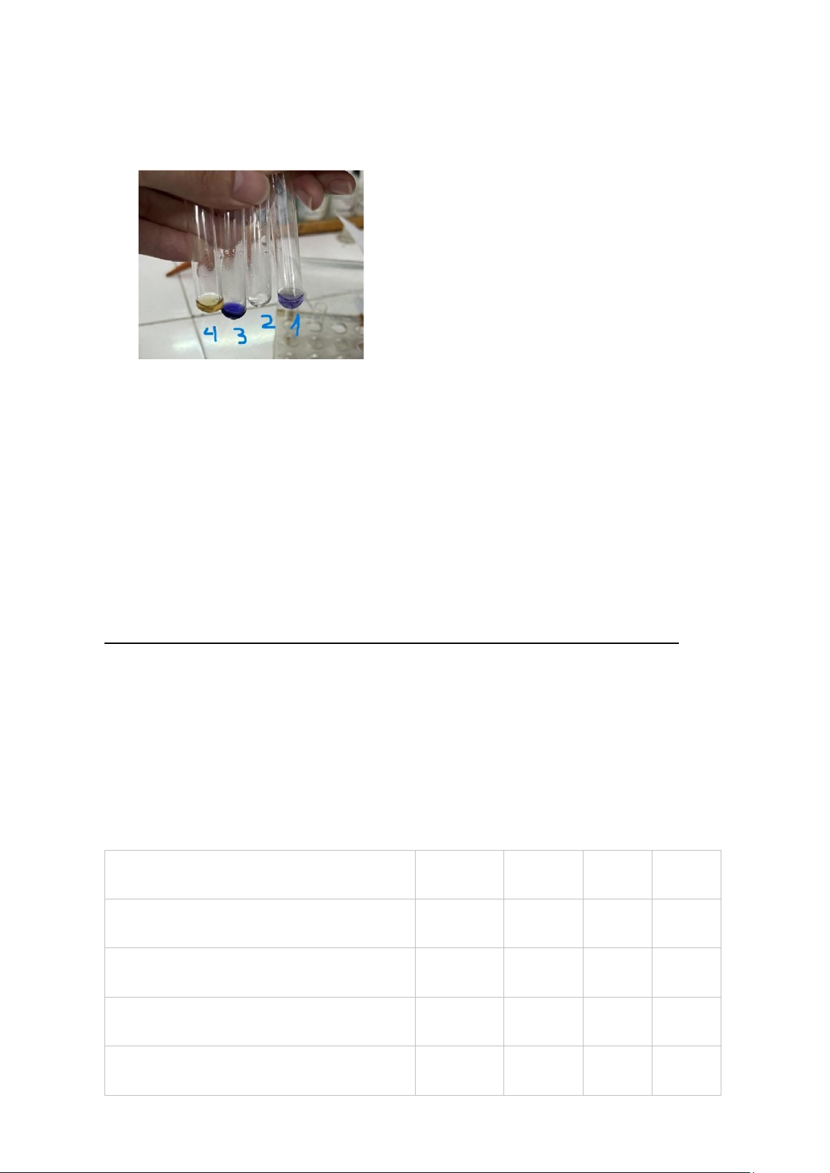 Cho vào lần lượt 4 ống nghiệm đánh số 1 2 3 4