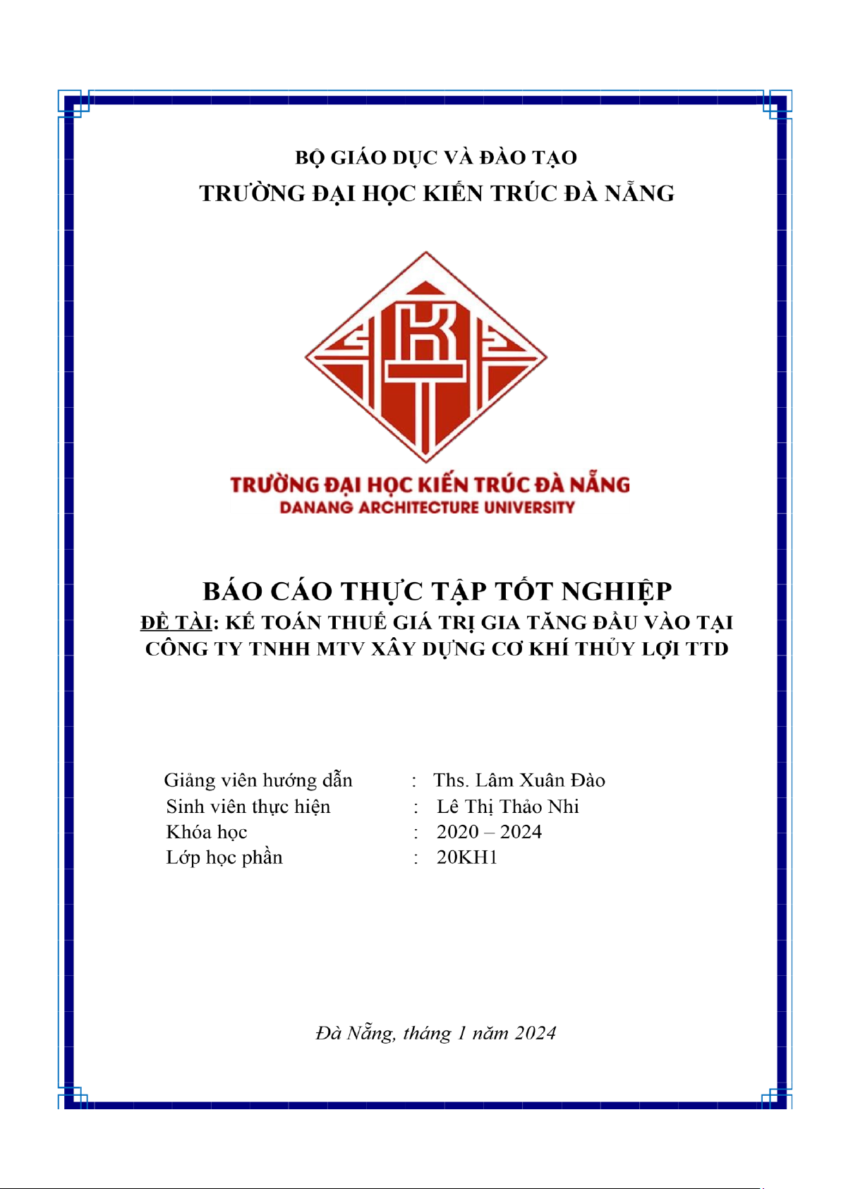 CÔNG TY TNHH MTV XD CƠ KHÍ THỦY LỢI TTD:  1.