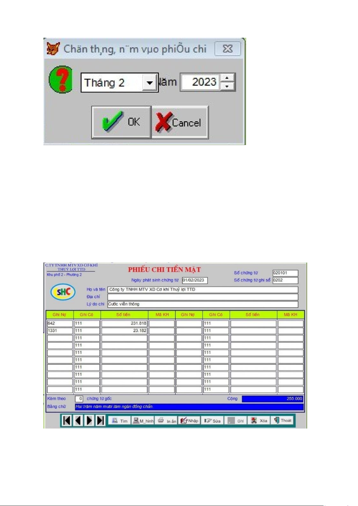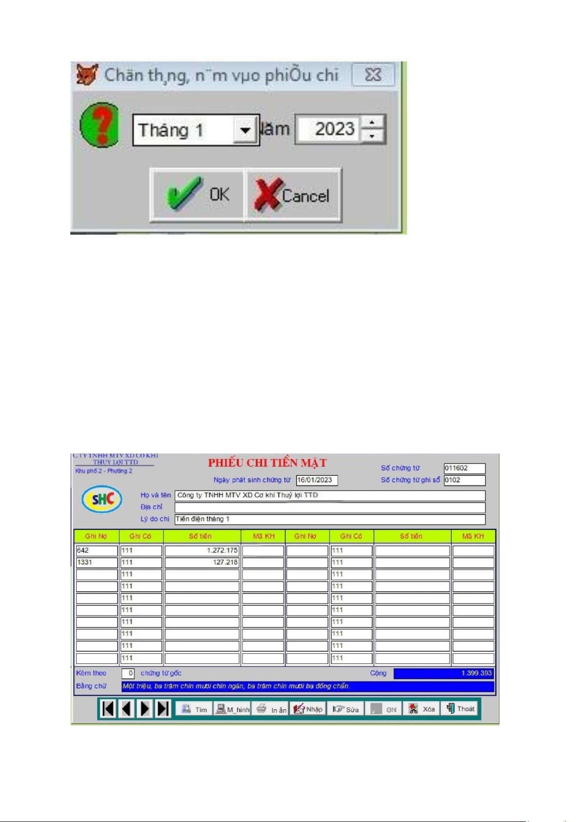 tin vào hộp thoại “ PHIẾU CHI TIỀN MẶT”:
