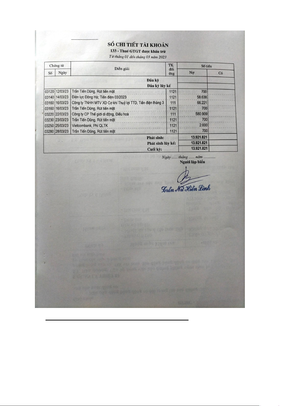 khoản 1331 – Thuế GTGT đầu vào được khấu trừ quý 1.