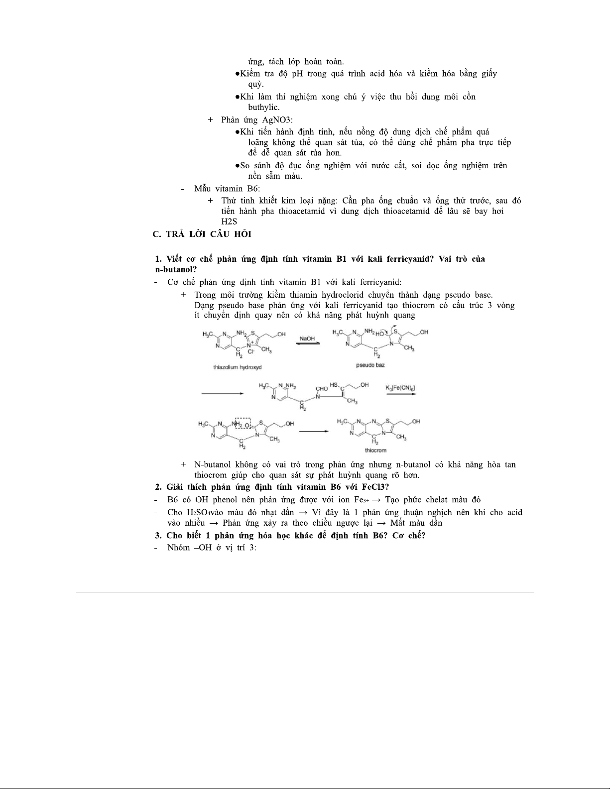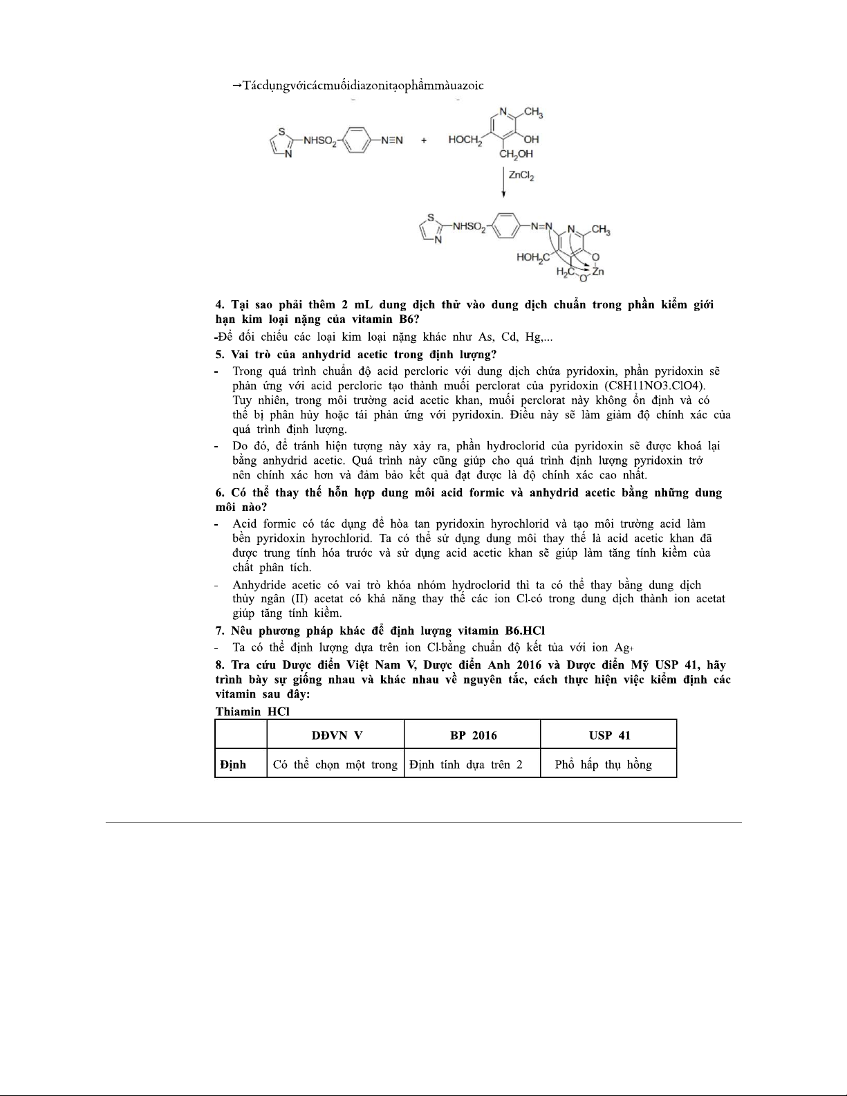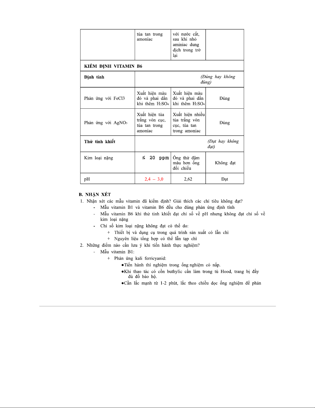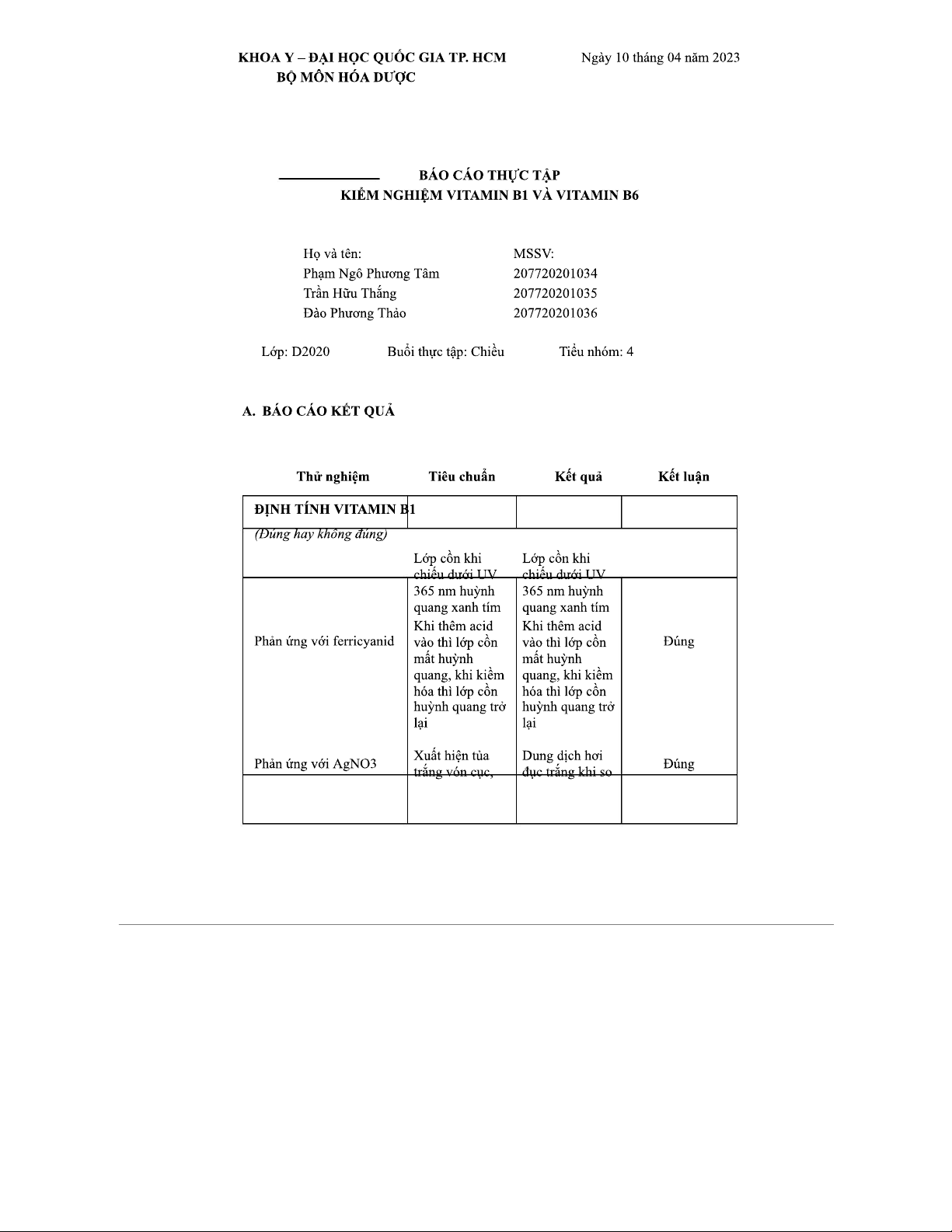 BÁO CÁO THỰC TẬP KIỂM NGHIỆM VITAMIN B1 VÀ B6 - KHOA Y 2077202010