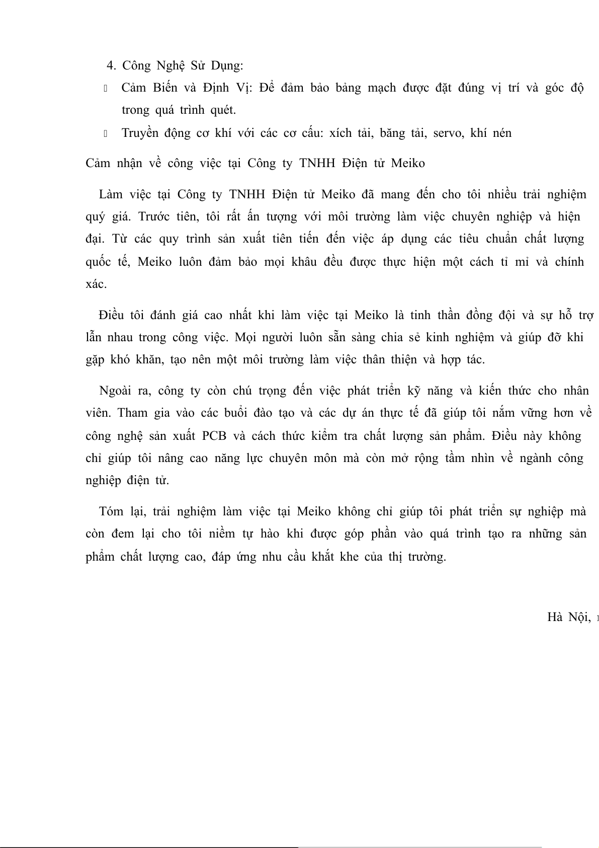 Tóm lại, trải nghiệm làm việc tại Meiko không chỉ giúp tôi phát triển sự nghiệp mà