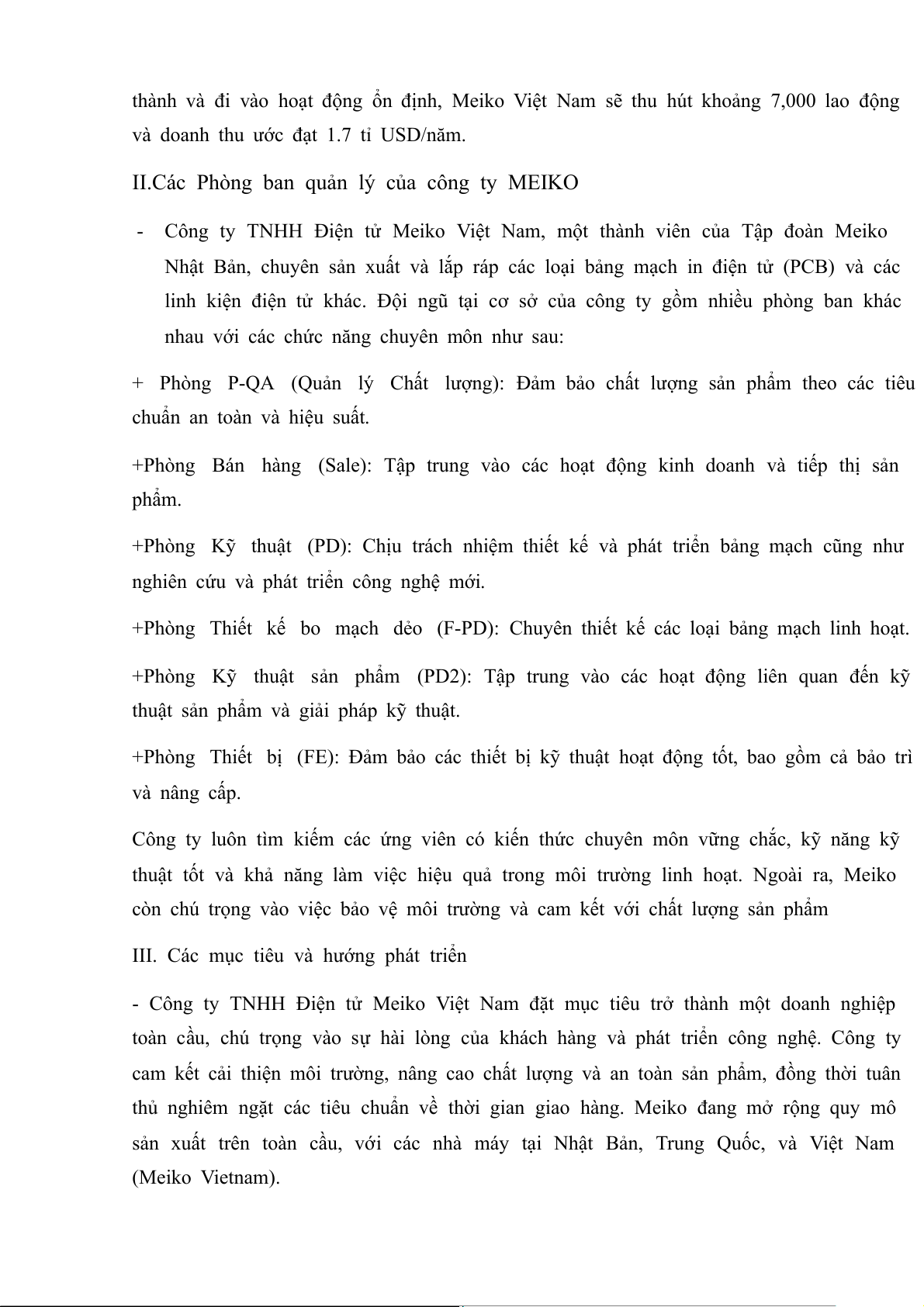 I. Giới thiệu công ty TNHH ĐiệnTử Meiko Việt Nam