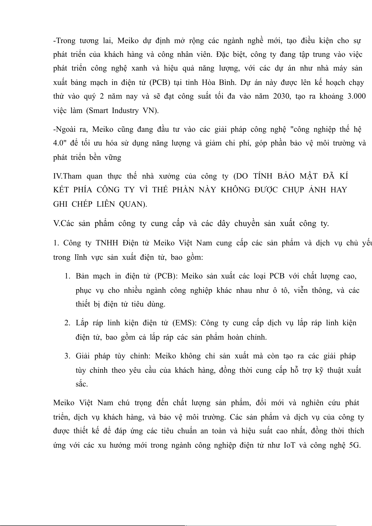 1. Công ty TNHH Điện tử Meiko Việt Nam cung cấp các sản phẩm và dịch vụ chủ yếu
