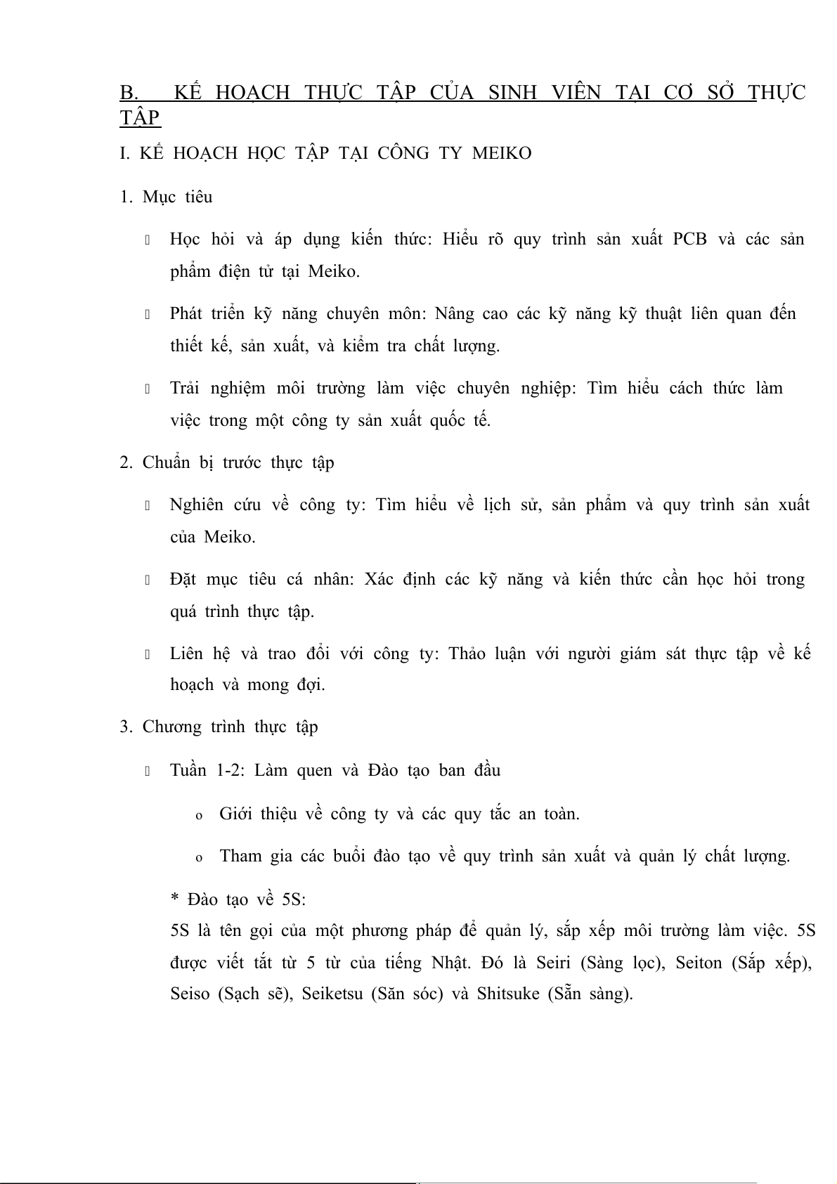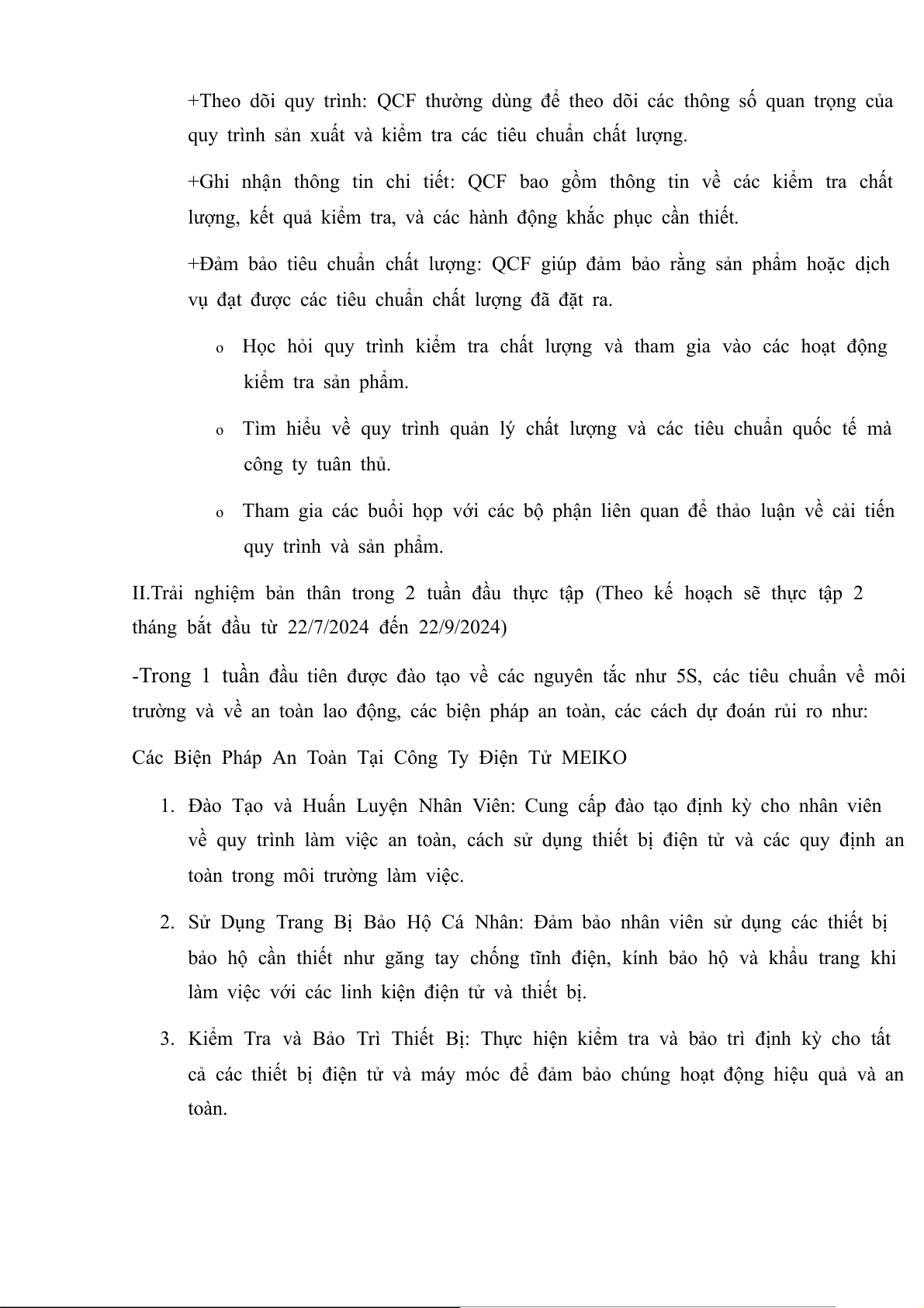 II.Trải nghiệm bản thân trong 2 tuần đầu thực tập (Theo kế hoạch sẽ thực tập 2
