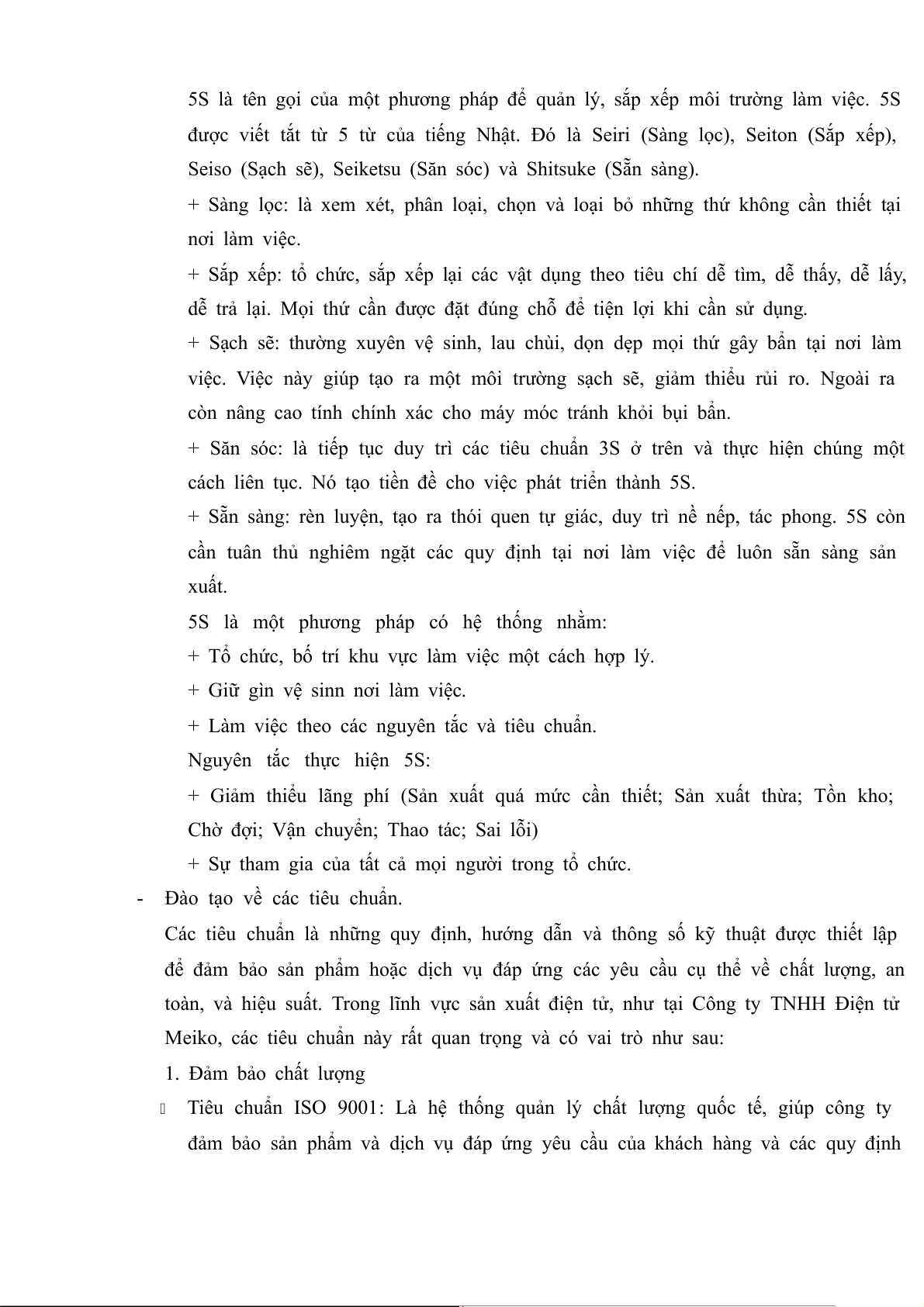 -Trong 1 tuần đầu tiên được đào tạo về các nguyên tắc như 5S, các tiêu chuẩn về môi