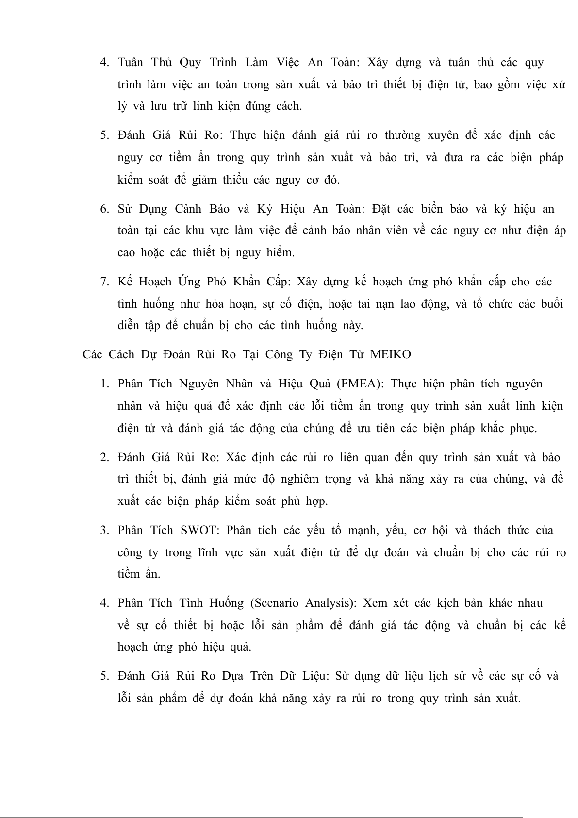 Các Cách Dự Đoán Rủi Ro Tại Công Ty Điện Tử MEIKO