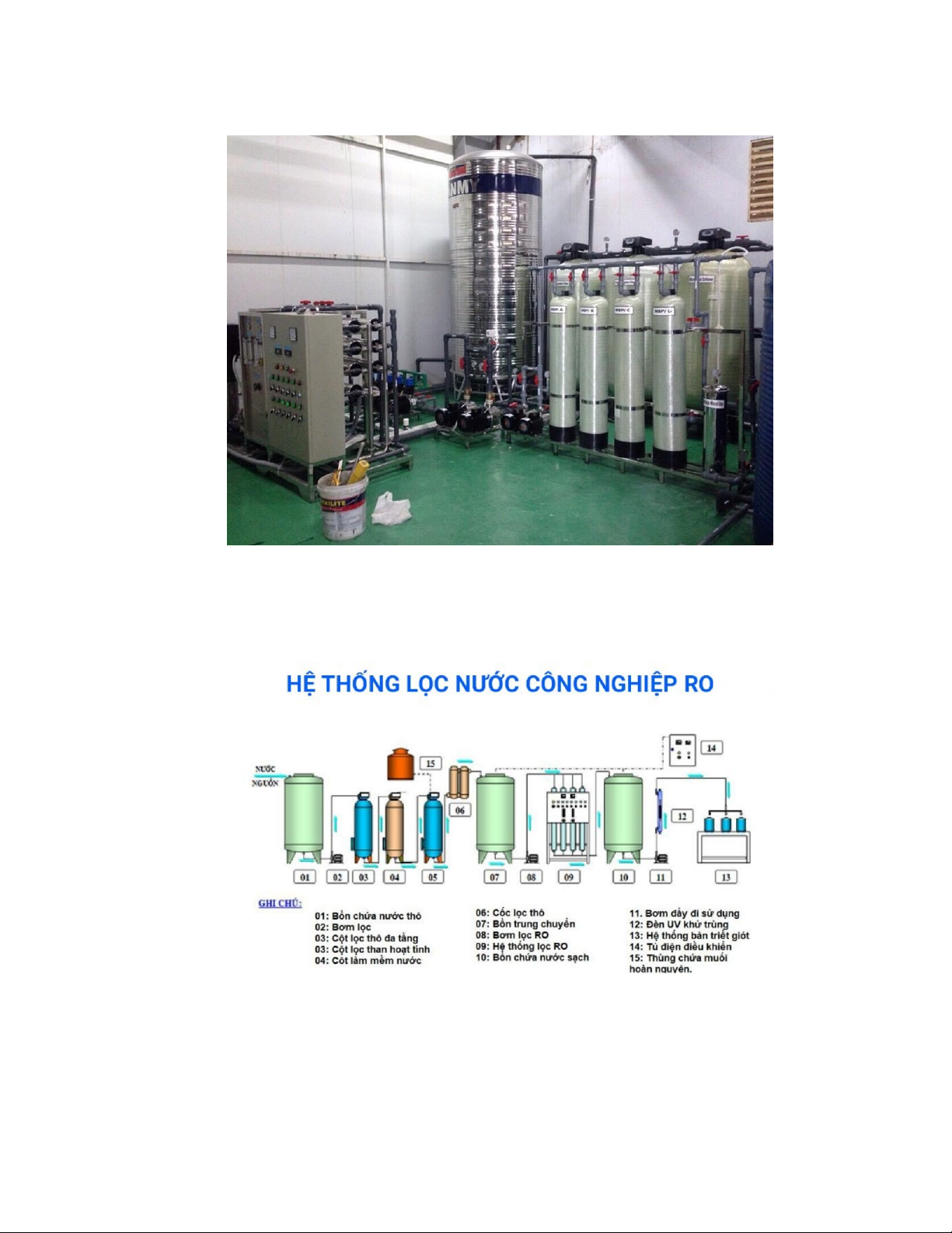 Nước trong nhà máy sau khi lấy từ nguồn sinh hoạt sẽ được xử lý RO thẩm thấu để