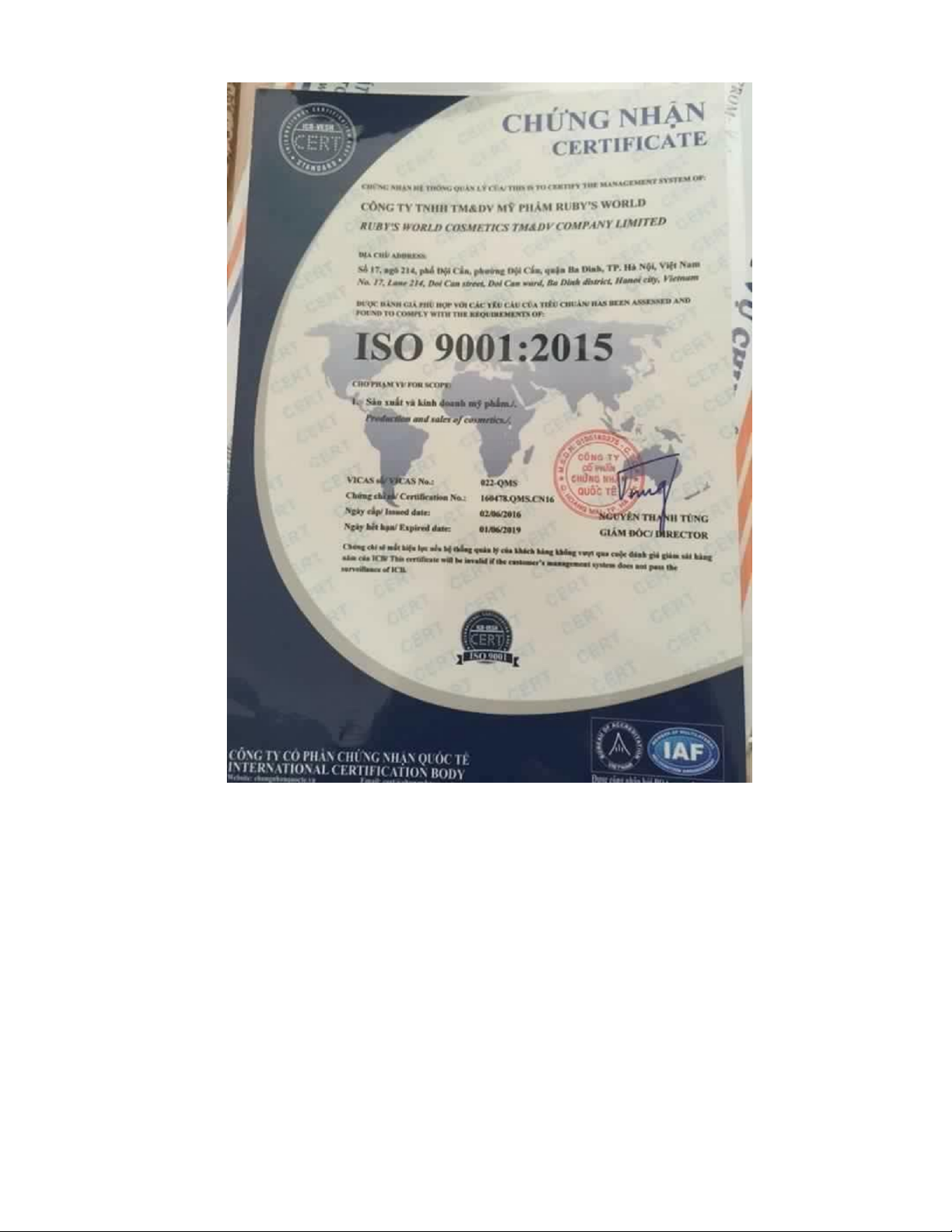 thế giới như: Provital (Tây Ban Nha), DSM (Thụy Sĩ), được chứng nhận bởi