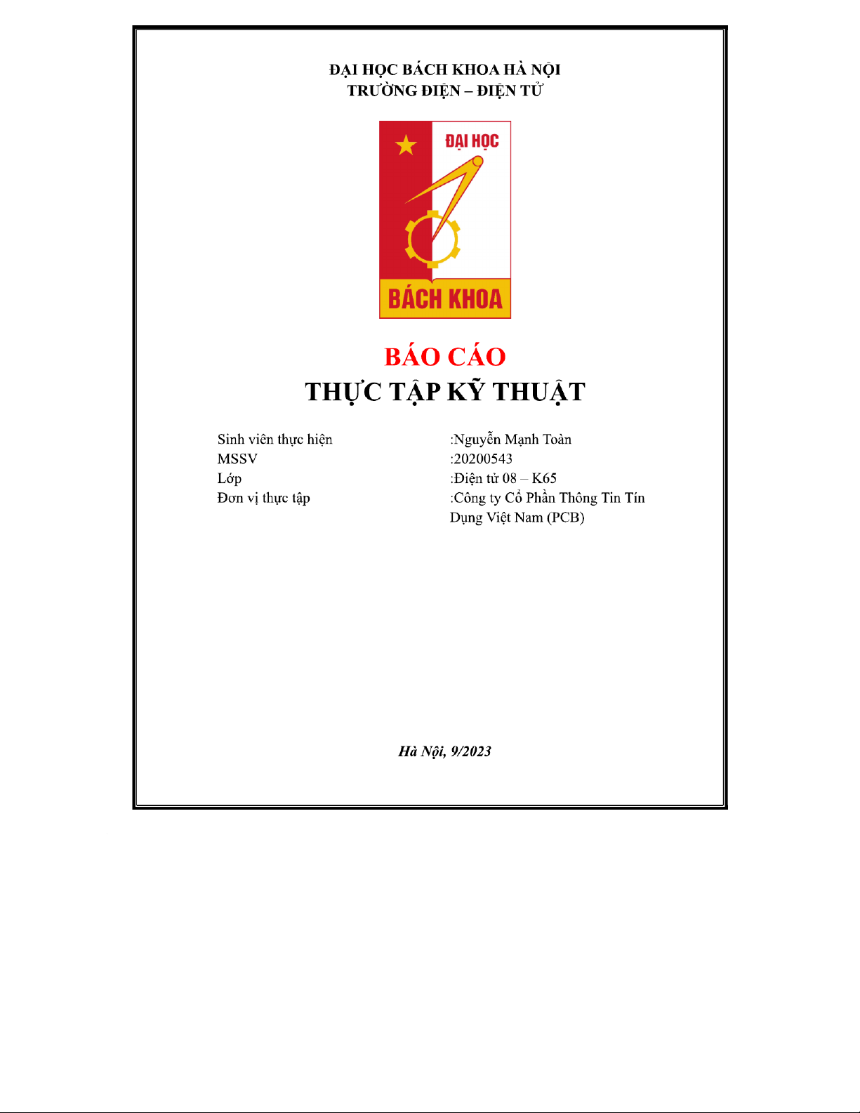 Báo cáo thực tập kỹ thuật | Thực tập cơ bản | Trường Đại học Bách Khoa Hà Nội
