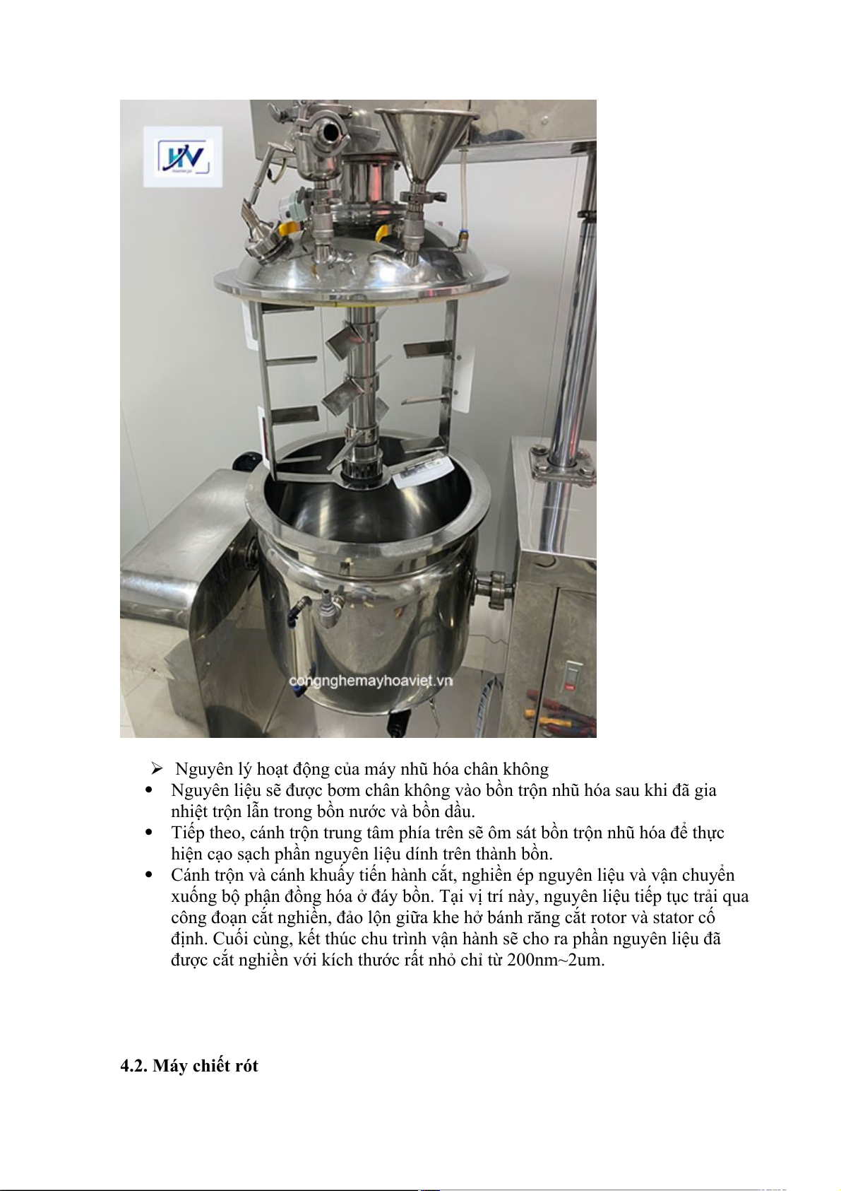 không tách dầu, tách nước và không vón cục. Cấu tạo máy nhũ hoá