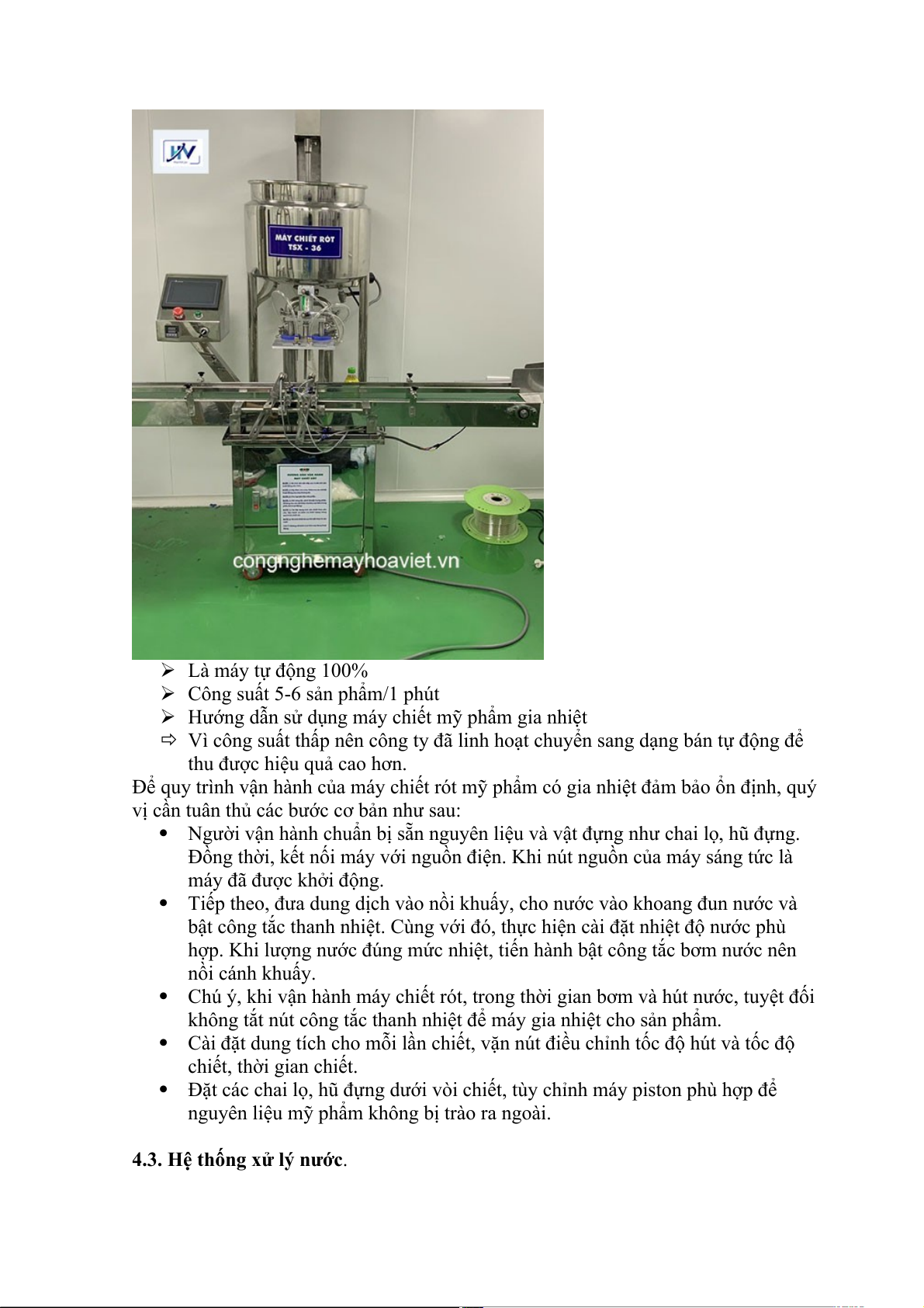 được cắt nghiền với kích thước rất nhỏ chỉ từ 200nm~2um. 4.2. Máy chiết rót Là máy tự động 100%