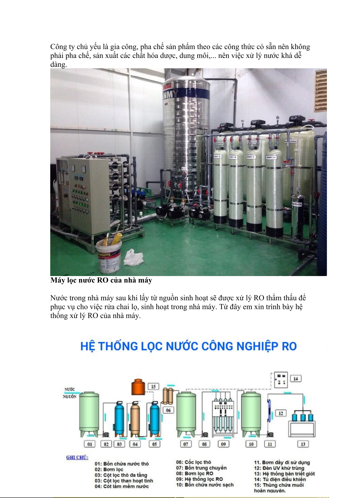 thống xử lý RO của nhà máy.