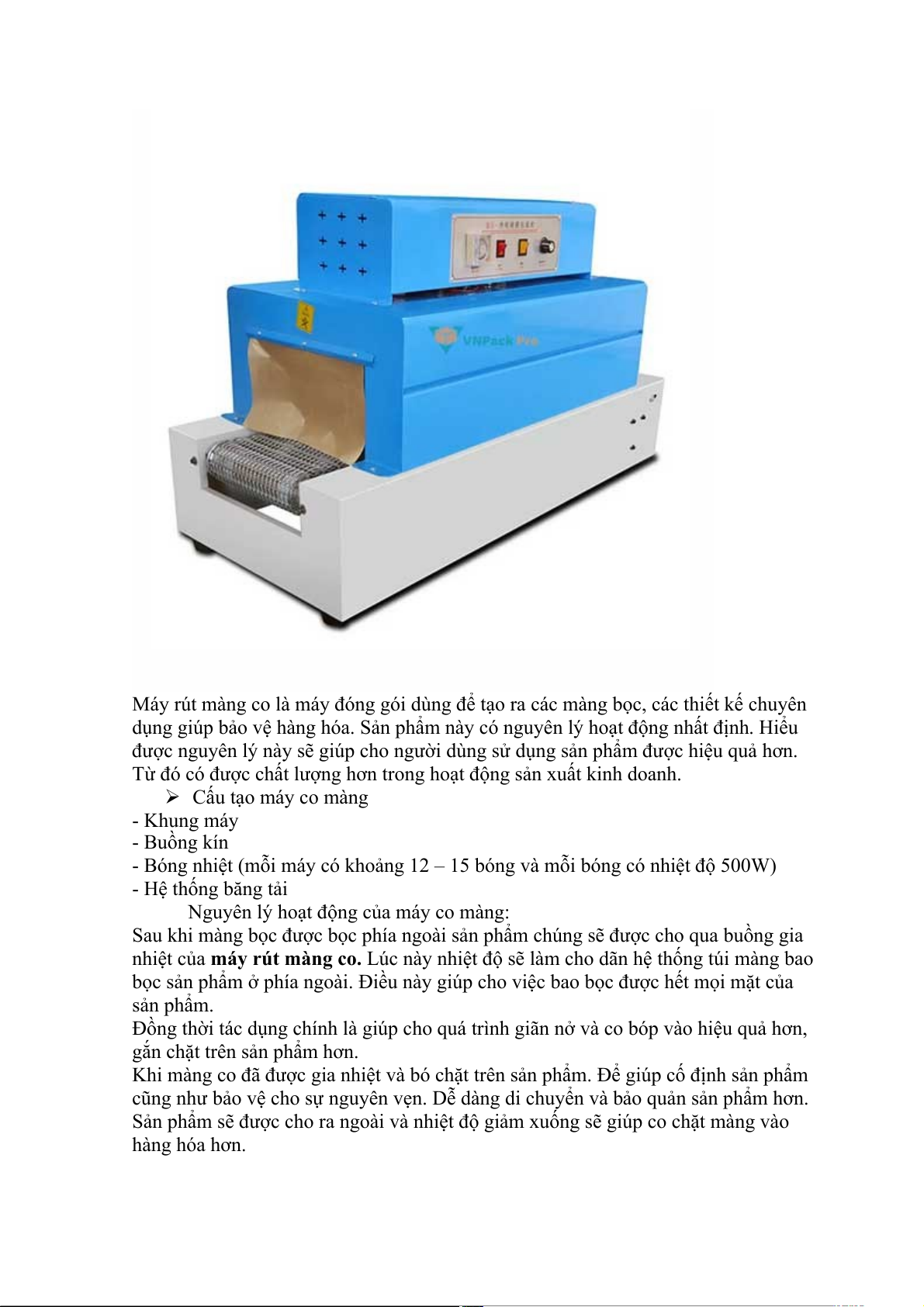 Từ đó có được chất lượng hơn trong hoạt động sản xuất kinh doanh. Cấu tạo máy co màng - Khung máy - Buồng kín