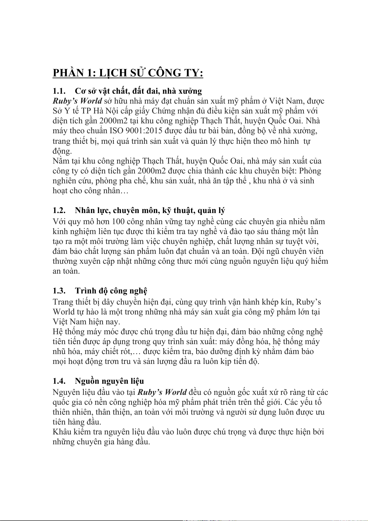 Địa điểm thực tập: Công ty TNHH Tập Đoàn Ruby’s World